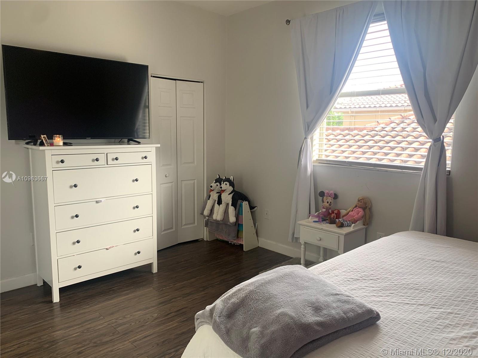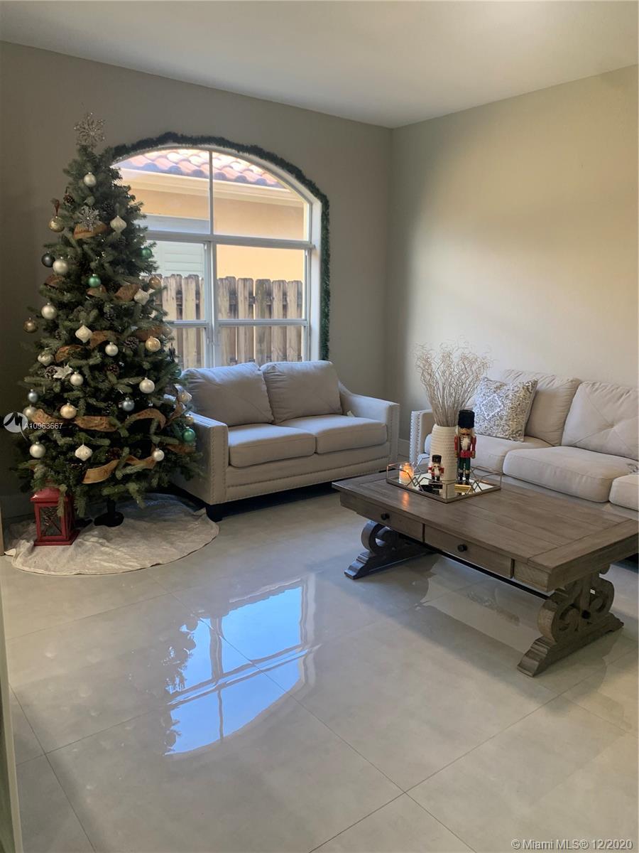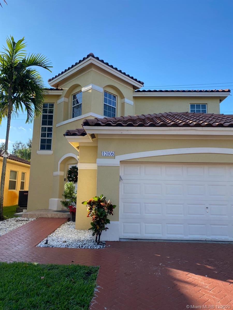 Spectacular two floor single family home 3 bedrooms, 2.5 bathrooms, and 2 car garage. 4th bedroom can convert from the second floor. The first floor features high ceilings and tile floors. Master bedroom, half guest bath, and formal dining room on first floor. The kitchen newly remodeled, efficient stainless steel appliances. Includes water filter throughout the house. AC unit installed in 2017. This community features a 24 hour manned gate. Close to I-75, Turnpike, major roads, shopping centers and hospitals. Don't miss out on this beautiful home.