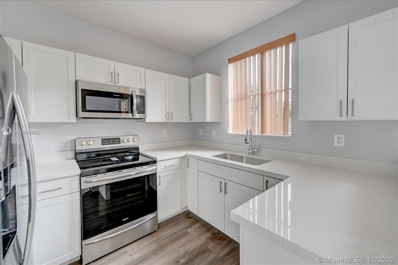 This is the only pristine 4 bedroom, 3 bathroom move-in ready townhouse in this community that came on the market! Property is located in Shoma Homes Community. The 1st floor has one bedroom downstairs for convenience. The town home comes complete with Waterproof laminate flooring, Quartz Kitchen Counter tops, Updated Kitchen Cabinets, S.S Appliances, all 3 bathrooms have marble counter tops, interior newly painted, New A/C, shutters + private fenced backyard w/pavers all the way around, ideal for BBQ & entertaining or enjoy a nice outdoor dinner. On the second floor, you have the washer and dryer, 3 spacious bedrooms including walk-in closet and beautiful bathrooms! Prime location, near restaurants and highways.
