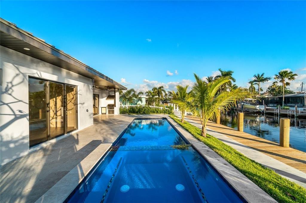 New construction in East Pompano Beach, canal front, ocean access home designed for you to enjoy the best Florida living lifestyle. New 60 feet private dock, salt water heated pool & spa, large covered patio, cabana bath and outdoor kitchen. Step inside to a luxury finished modern interior, high ceilings, simple one story living, porcelain wood plank throughout entire home, all marble baths, custom cabinetry & closets, high end appliances and plumbing fixtures, fireplace, Restoration Hardware lighting throughout. 4 beds, 1 master, 1 en-suite, 3 full baths, 2 half baths. Built for the peace of mind with many upgrades, high impact doors & windows, metal roof. Only a few min to the beach, amazing restaurants, airport and Fort Lauderdale. Ready to move in!
