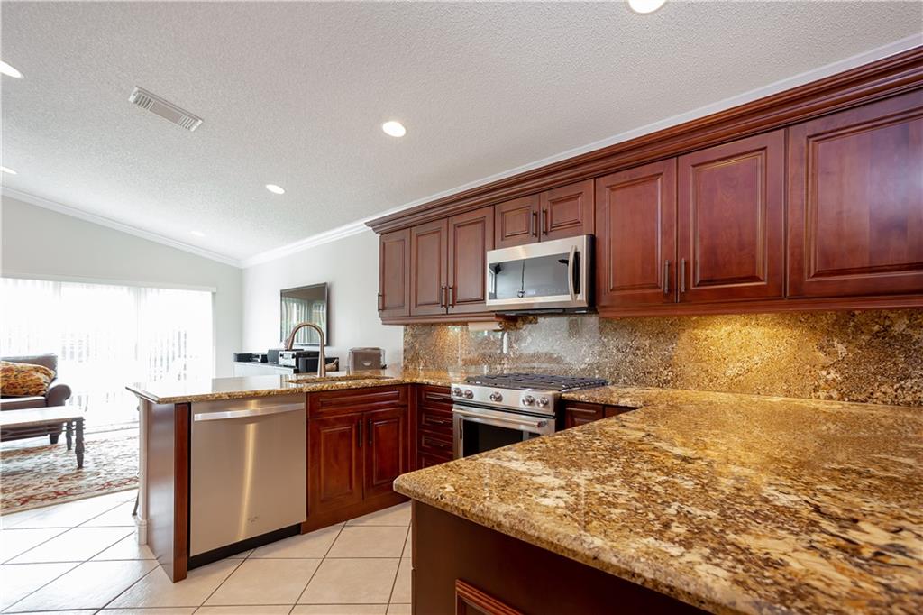 Immaculate 3 bedroom 2 bath home in the gated neighborhood of Maple Ridge. As soon as you walk in you will feel at home. Large open living space surrounded by Natural light through the all IMPACT/triple pane WINDOWS! Gourmet kitchen featuring oversized granite countertops, tons of hard wood cabinet space with pull outs, stainless steel appliances, and gas stove. Large living space plus formal dining. Primary bedroom features extra large walk in closet, updated bathroom with double sinks. Laundry room. 3rd bedroom is fully decked out as an office with a murphy bed perfect for guests. Extended screened in patio with retractable awning. 2017- 500 gal LP gas tank for standby generator and gas stove. HOA includes security, gate, and amenities! Easy access to I-95, I-75, 595 and the Turnpike,