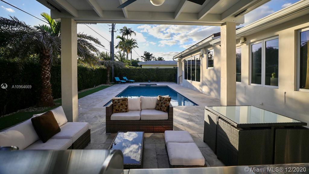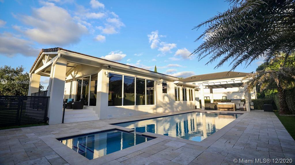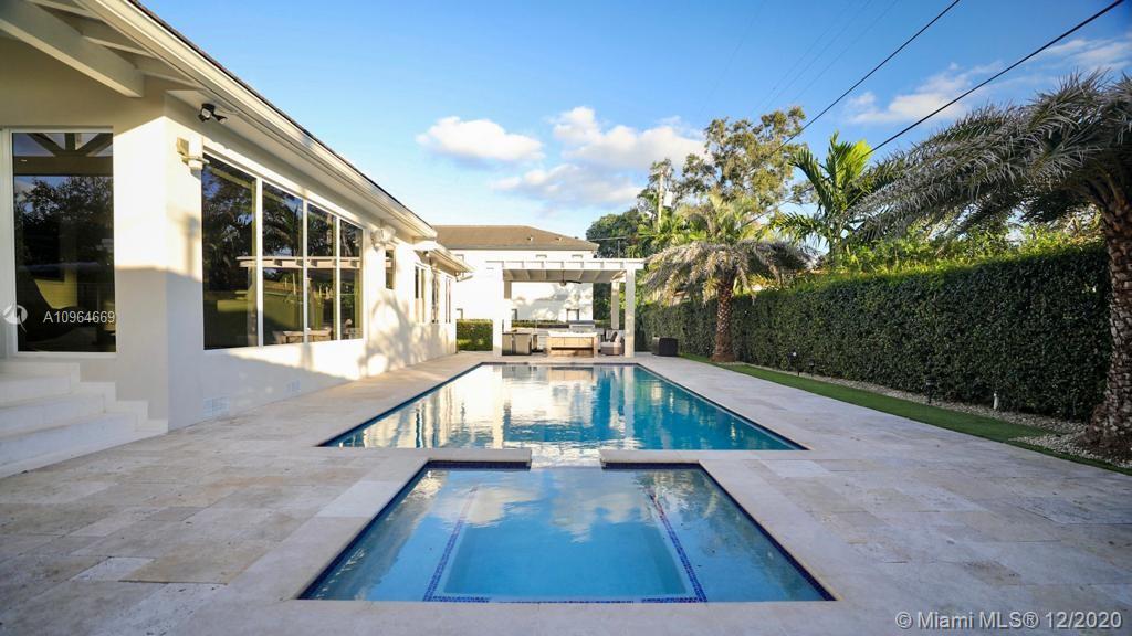 One of a kind splendid home in the heart of Coral Gables. This modern, updated & well maintained property is nestled on a spacious 10,000 sqft lot surrounded by lush landscaping. Captivating & completely remodeled, counts with 3 bedrooms & 3 full bathrooms, chef's kitchen & a magnificent pool. Stunning views given by the massive windows in the living room allow you to enjoy plenty of natural light & endless all around views. Its unique & distinctive jacuzzi & BBQ area sit along a beautiful custom made pergola; perfect to enjoy w/ family & friends. Spacious & bright master bedroom offers walking closets, w/shower & a remarkable tub. Special features: high impact windows & doors, automatic gate & garage doors, automatic blinds. Contact listing agent to schedule an appointment!