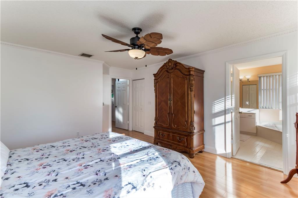 LAKEFRONT FOUR BEDROOM, THREE BATH HOME IN SILVER LAKES! THIS HOME HAS AN OVERSIZED FENCED-IN BACKYARD WITH A PATIO, GAZEBO, HUGE GRASSY AREA, MANY FRUIT TREES, ALL OVERLOOKING THE PEACEFUL LAKE, WITH PLENTY OF ROOM TO BUILD A POOL! THE INTERIOR FEATURES TILE FLOORING ON THE LOWER LEVEL AND WOOD FLOORING ON THE STAIRS AND UPPER LEVEL. UPGRADED KITCHEN WITH GRANITE COUNTERTOPS, WOOD CABINETRY AND STAINLESS STEEL APPLIANCES. ONE FULL BEDROOM AND FULL BATH ON THE LOWER LEVEL. LARGE MASTER SUITE WITH GORGEOUS LAKE VIEWS, WALK-IN CLOSET, MASTER BATH HAS TWO VANITIES AND A SEPARATE BATHTUB AND SHOWER.