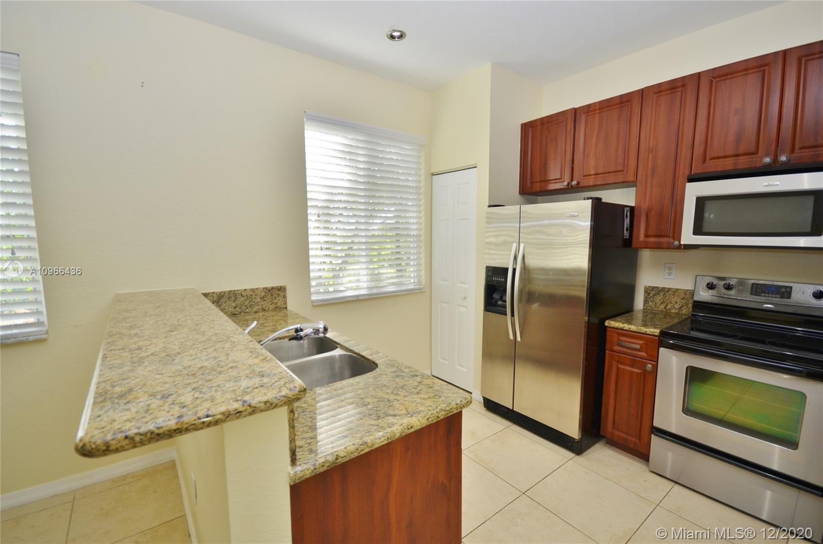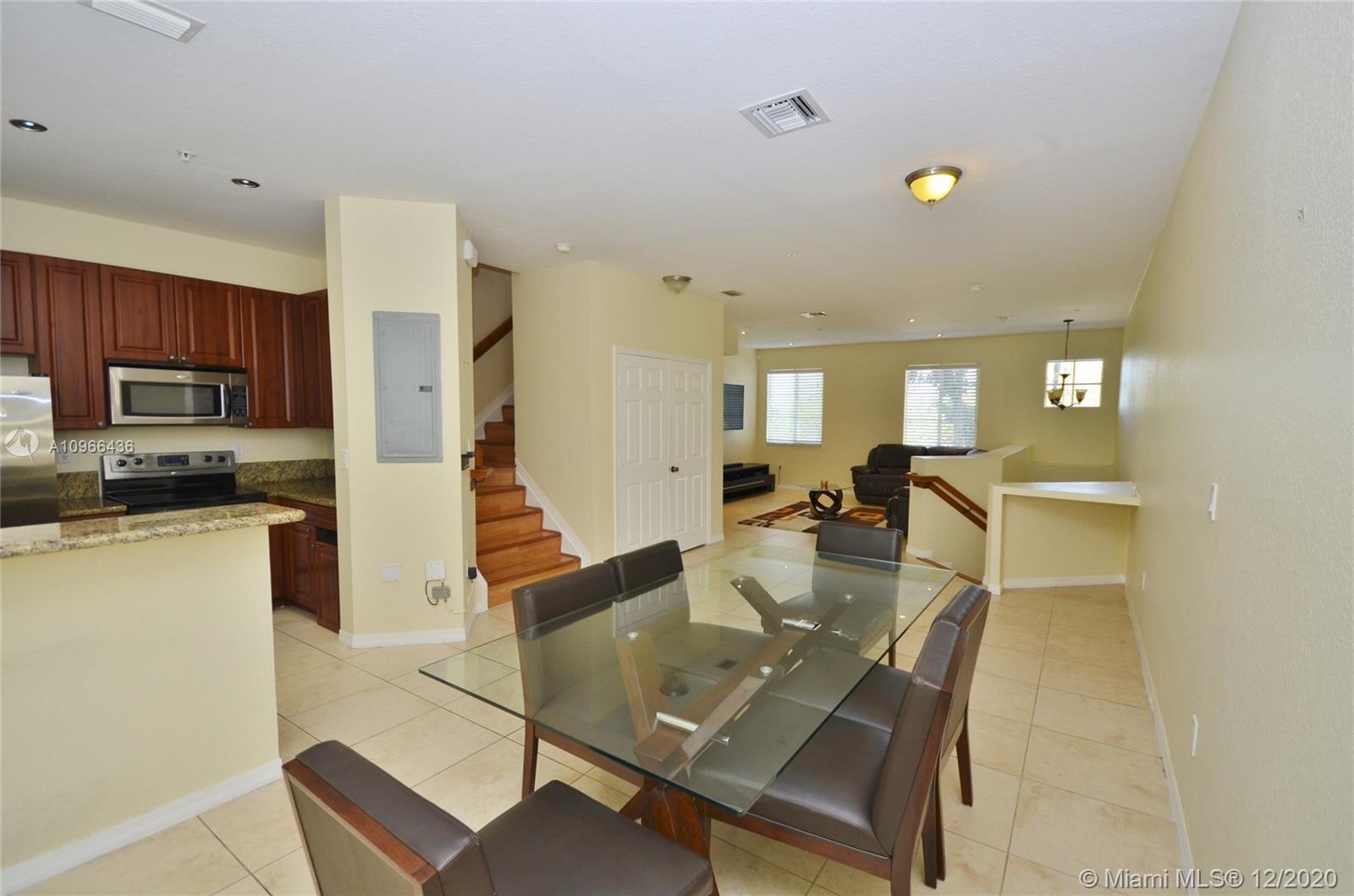 Location, location, location! Spectacular two story 2006 townhouse features 3 bedrooms, 2.5 bath, spacious open concept kitchen/ living space for entertaining with tile floors, all bedrooms on second floor with wood floors, stackable washer and dryer, upgraded kitchen with granite countertops, stainless appliances, high ceilings, recessed light, impact windows and doors, master bath has separate shower and whirlpool tub, walking closets, plenty of storage , and LOTS of natural light. Centrally located in Miramar, it's close to shopping malls, dining, I-75 and Turnpike. You must see this place!!