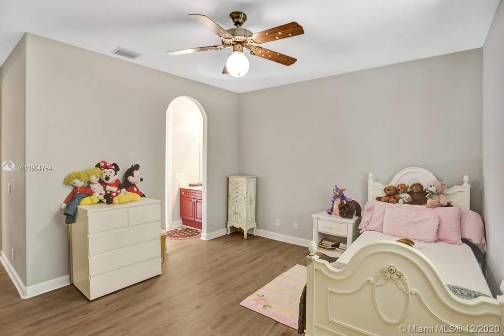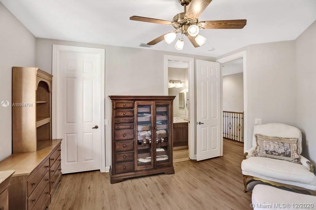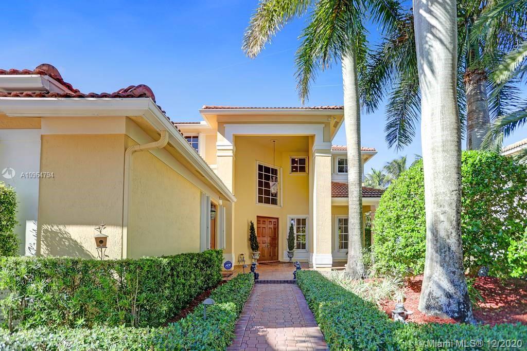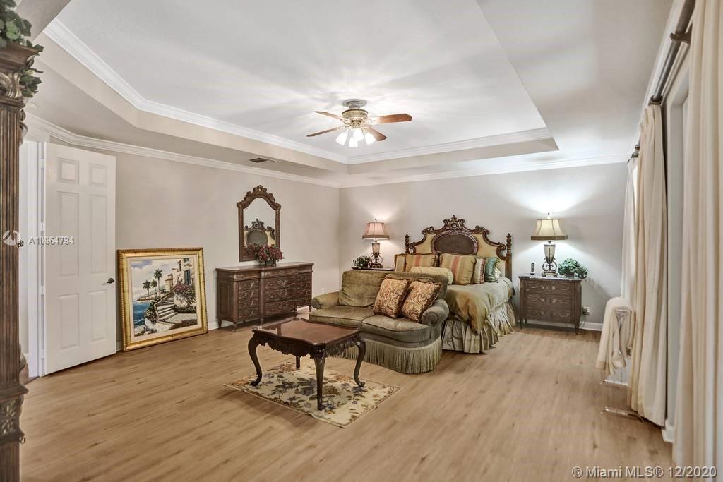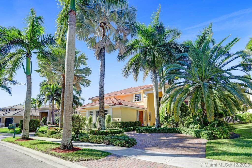 PRICE DROP Popular Sanibel model tucked on a royal palm tree-lined street in gated community of Weston Hills. Fresh neutral paint with real wood floors grace the living areas. 6 bedrooms, 5.5 bathrooms + office (built-in wood cabinets and desk) + 20x14 playroom and loft (could be 6th bedroom) span 5365 sq ft (inclusive of 1/1 guest house). Grand entry with volume ceiling and elegant custom staircase. White kitchen with center island and breakfast nook overlooks the family room. Luxurious owners wing w/sitting area features 300 sq ft balcony. New flooring upstairs in all bedrooms. The resort-style backyard features an expansive paver patio with a covered patio with rolling screens that open and close with a remote. Fully fenced privacy hedged. Full house generator, accordion protection