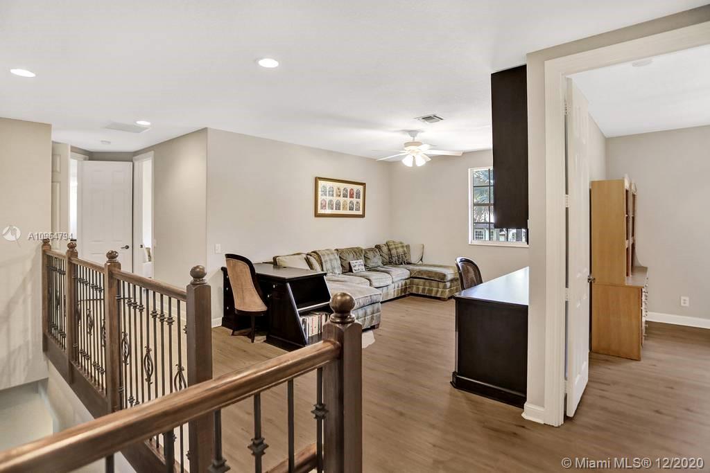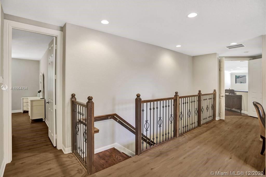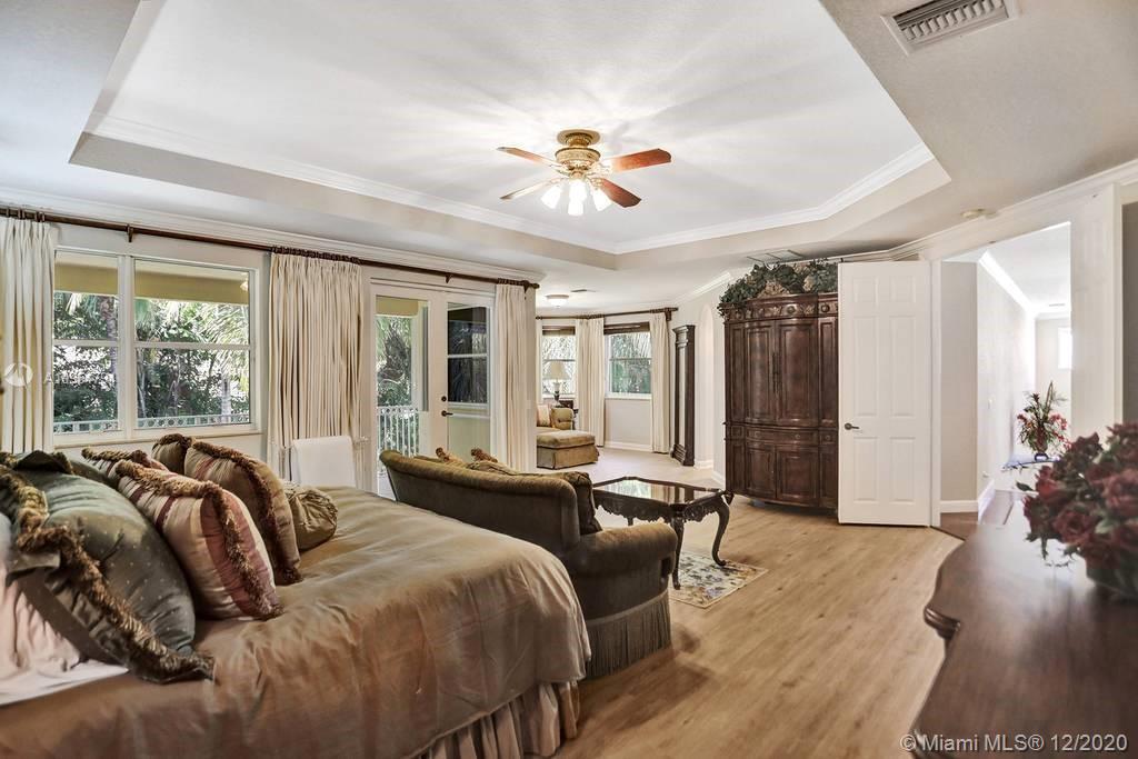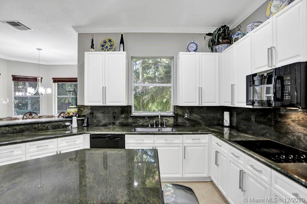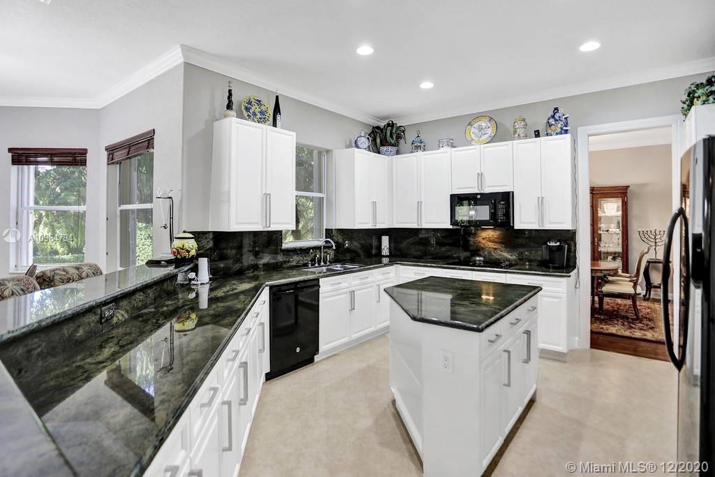 PRICE DROP Popular Sanibel model tucked on a royal palm tree-lined street in gated community of Weston Hills. Fresh neutral paint with real wood floors grace the living areas. 6 bedrooms, 5.5 bathrooms + office (built-in wood cabinets and desk) + 20x14 playroom and loft (could be 6th bedroom) span 5365 sq ft (inclusive of 1/1 guest house). Grand entry with volume ceiling and elegant custom staircase. White kitchen with center island and breakfast nook overlooks the family room. Luxurious owners wing w/sitting area features 300 sq ft balcony. New flooring upstairs in all bedrooms. The resort-style backyard features an expansive paver patio with a covered patio with rolling screens that open and close with a remote. Fully fenced privacy hedged. Full house generator, accordion protection