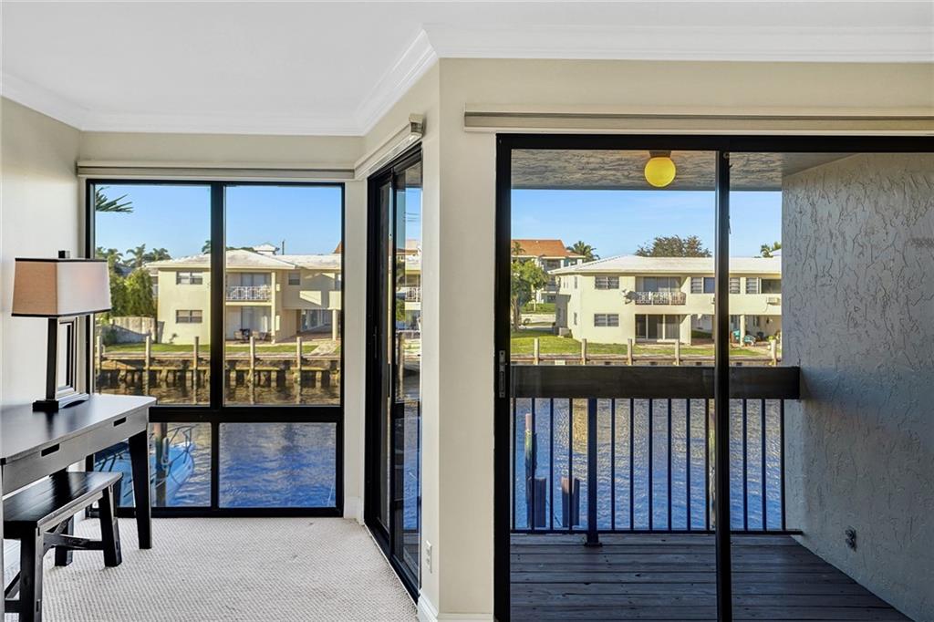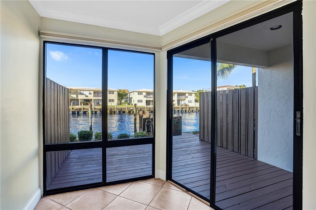 Fantastic 2 bedroom 2.5 bath waterfront townhome with no fixed bridges and ocean access in Coral Ridge. This unit has a private dock, which can accommodate a boat up to 37.5’. Stainless steel appliances and granite countertops in the kitchen. Open living area! Both bedrooms upstairs each with adjoining balconies (balcony over master bedroom overlooks the canal). Large deck on first floor with water views. Front atrium and 1 car garage! Maintenance includes water, sewer, flood and wind policy for the property, interior pest control, trash + recycle and weekly landscaping. Located in Bayview Elementary school district. Close to restaurants, shopping and beaches.