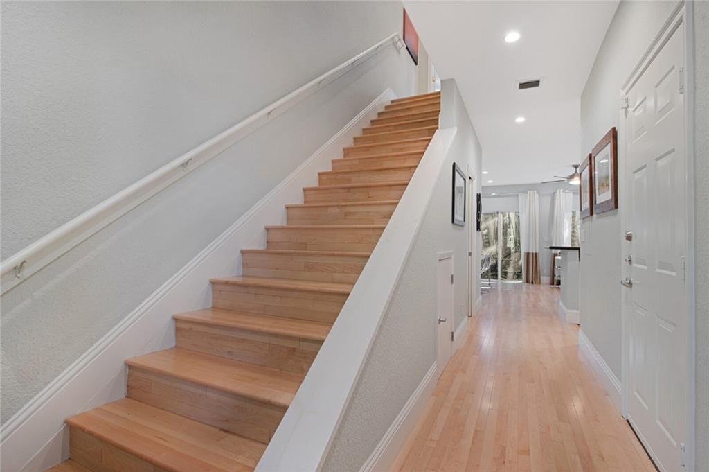 Beautiful designer town home just off Wilton Drive in gated community with pool! Totally updated home with 3/4" maple wood flooring and new recessed lighting throughout, open living space with sliders to private patio, half bath, and kitchen with granite counter tops and new dishwasher. Second floor boasts vaulted ceilings, large master retreat with spa like bathroom with double vanity and oversized shower, front loading washer & dryer. Extra bonus office/den/3rd bedroom in this layout and garage. Click the virtual tour link to see 3D tour!