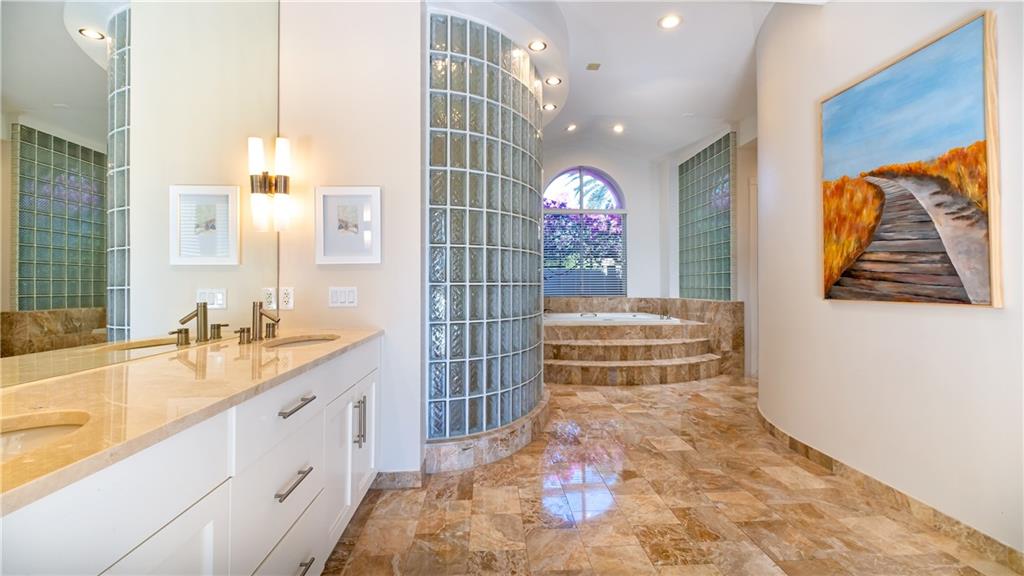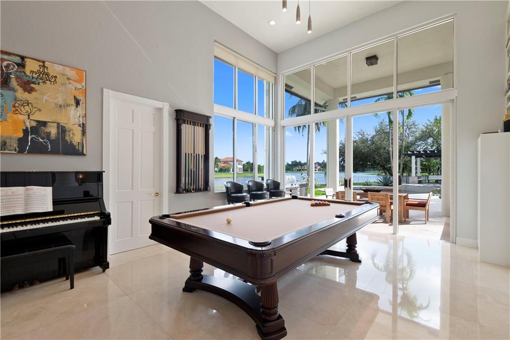 This luxurious waterfront home with 7 bedrooms & 6 ½ bathrooms and 1.31 Acres includes a billiard room, formal dining room, luxury home office, sunken wet bar, and exercise room. Located in Windmill Ranch Estates this magnificent lakefront home offers an open floor plan with an expansive outdoor living space, which beautifully lends itself for entertaining guests and family. With an ever-present southeasterly breeze delight yourself in the stunning heated salt-water pool surrounded by an extensive travertine deck, a beautiful pergola with fire pit and a convenient outdoor grilling center. Inside you will be elated with its eclectic contemporary design. The immaculate kitchen with Miele appliances and quartz countertops also boasts a wine storage with 600+ bottle capacity. Come and see it !