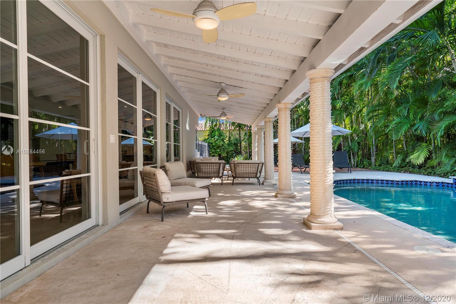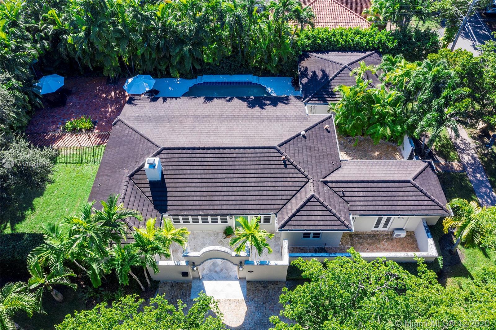 Enter through a private forecourt into this stunning home, located on a large corner lot, along a quiet tree-lined street in central Coral Gables. Large rooms are embellished with abundant natural daylight and the open floor plan allows for direct views of the Pool, waterfall, and surrounding exterior Terrace. Renovated with attention to details including Marble floors, Gallery lighting, Fireplace, as well as impact windows and doors throughout. Tasteful interior design with separate flexible room that can be used as a formal Dining Room or Study, a Laundry Room with Pantry, and a private side courtyard. 3 BR and 2.5 BA in the Main House and a 1BR and 1BA detached cottage along with Garage and plenty of room for expansion. Short distance to Miracle Mile and easy access to MIA Airport.