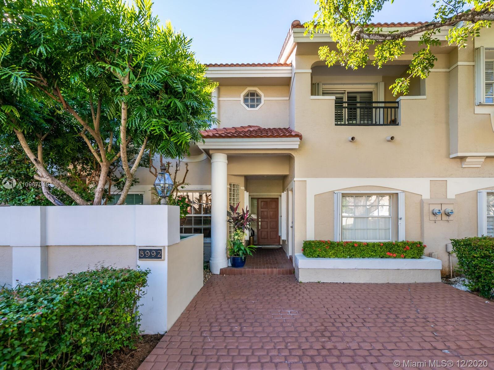 Beautiful 3 bedroom, 2-1/2 bathroom townhouse in gated Sutton Place. There is also a den downstairs that could serve as a 4th bedroom or office. Enjoy Florida living with a private covered patio. This 2-story home is meticulously maintained and has updated Kitchenaid appliances, elegant crown-molding, and warm travertine and wood floors. Association fee includes roof, exterior painting, and property insurance. Amazing location near Dadeland Mall, expressways and Metrorail yet in a secluded enclave of only 28 homes. Community amenities include pool, two tennis courts and clubhouse. Located in the Village of Pinecrest, with some of the best schools: Pinecrest/Palmetto/Palmetto. A MUST SEE!