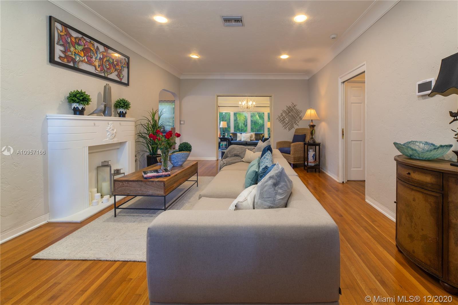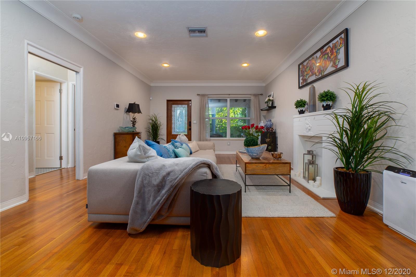 Vintage Coral Gables gets a charming contemporary makeover in this two bedrooms and two bath spacious home tastefully remodeled with newer roof and impact windows. All wood floors throughout add contemporary appeal to the well distributed floor plane featuring spacious living room, den with view to the garden, and formal dining perfectly located to interact with the updated open kitchen with granite countertops and stainless steel appliances. The enclosed private backyard is enhanced with mature trees, and a nice cover terrace perfect entertain family and friends. Double height car garage with lots of storage space. This inviting home nests on a beautiful tree-lined street in the prime of Coral Gables, close to all the shopping, dining, and all Florida lifestyle conveniences you desire.
