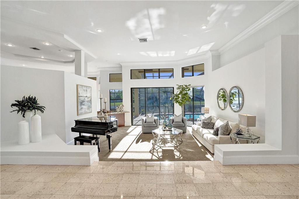 STUNNING 5BD/4.5BA/3CG custom home with many NEW updates on picturesque lakefront lot in boutique enclave of Palm Island with screened pool/raised spa & huge covered patio, perfect for year-round comfort! Almost 4000SF, light, bright, spacious interior, meticulously maintained! Split floorplan with sep kids wing, including suite perfect for in-laws! Solid hardwood & marble flooring in living areas & Master. Luxurious Master Bath, Cabana Bath, gorgeous granite/stainless kitchen w/center island, double ovens, wet bar. BRAND NEW 2020 UPDATES include: entire interior painted in modern white, new flat soaring ceilings (popcorn removed), new modern chandeliers, all LED lights, new sprinkler, pool pump, patio fan, water heater! New Roof 2012, accordions, custom closets, crown molding & much more!