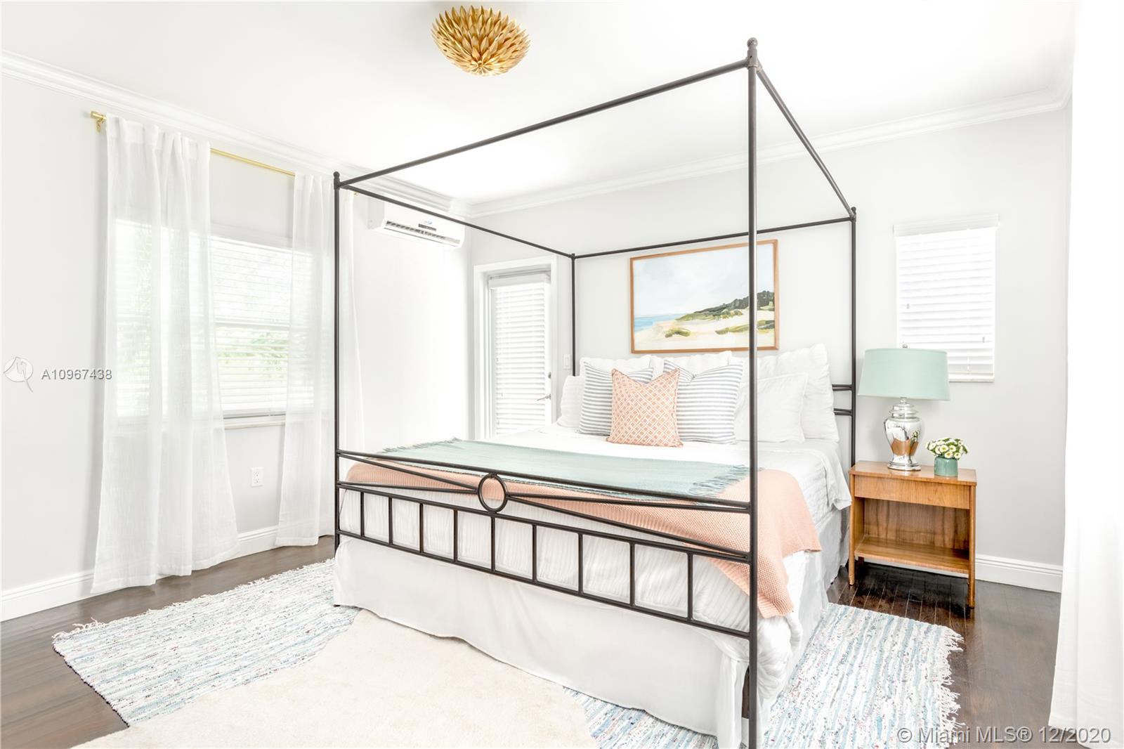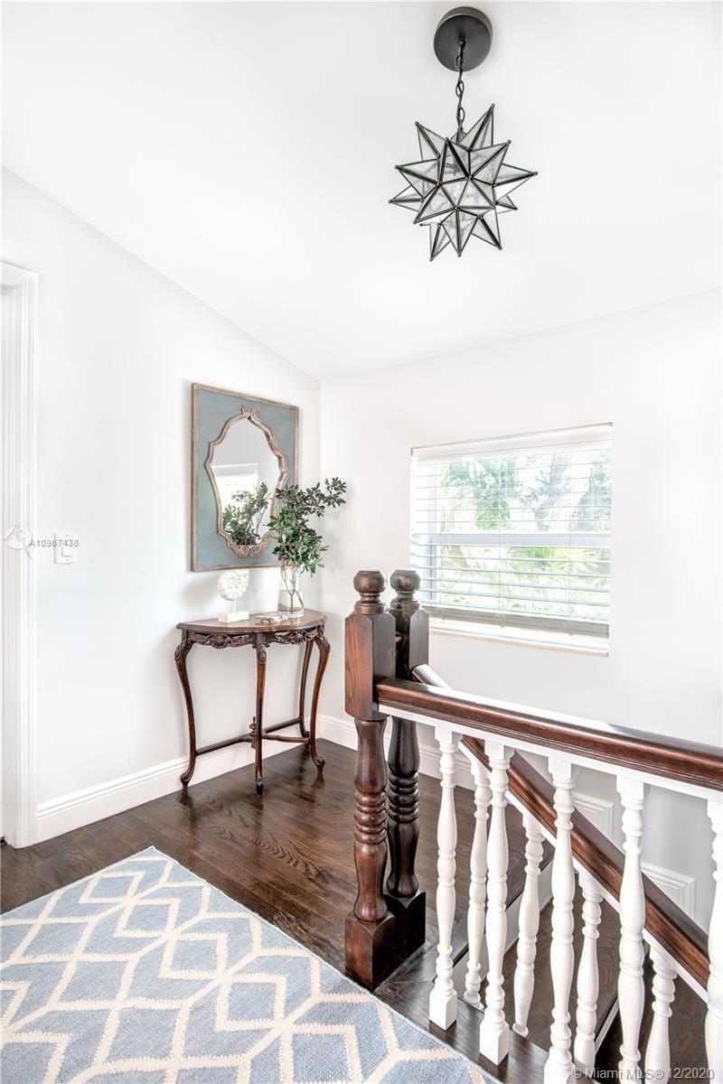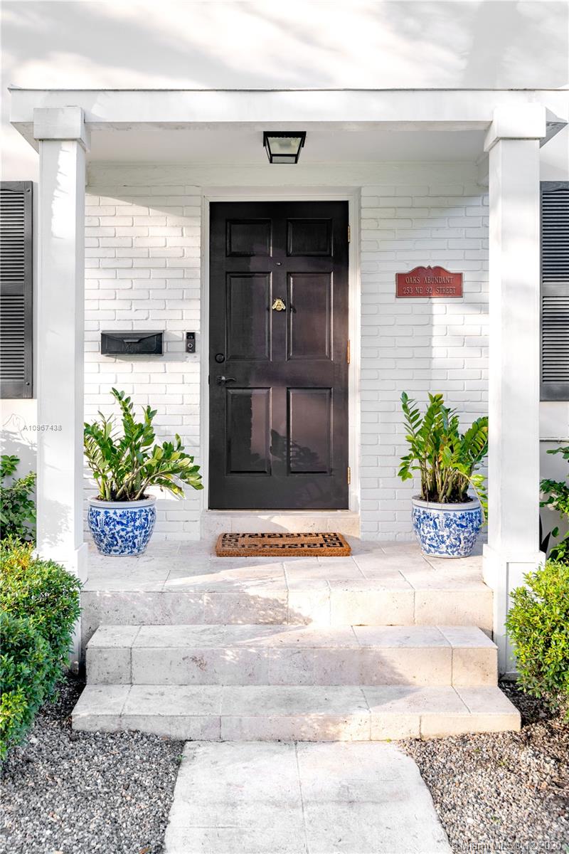 One of the most charming houses in Miami Shores. This two-story home, built in 1938, is nestled under 200-year-old oaks and has an inviting, traditional feel, yet all the modern luxuries. Lush and meticulous landscaping provides privacy and shade to the different outdoor living spaces, including an upstairs bedroom veranda. Light flows into every room, highlighting the original features of the home. The master bedroom, nursery or office, and living room open to a magnificent courtyard with space for entertaining or a future pool. The detached two-car garage has a full bathroom, which makes it a great space for an office. This quiet street is a short walk from downtown Miami Shores.