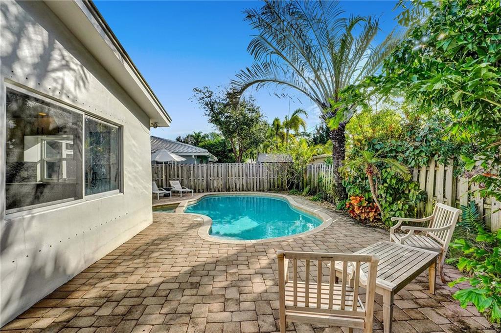 Your Mid Century Modern 3 Bedroom 2 Bath Pool Home with a 2 Car Garage waiting for you! Come enjoy your own oases within a bike ride to the beach, restaurants, and shops! Tile throughout, renovated kitchen and bathrooms, split bedroom floor plan, cabana bathroom to the pool area, and the master bedroom opens to your screened in patio! Heated Pool, Fenced in yard! Hurricane shutters. Great home for a vacation spot, primary home, or investment!!