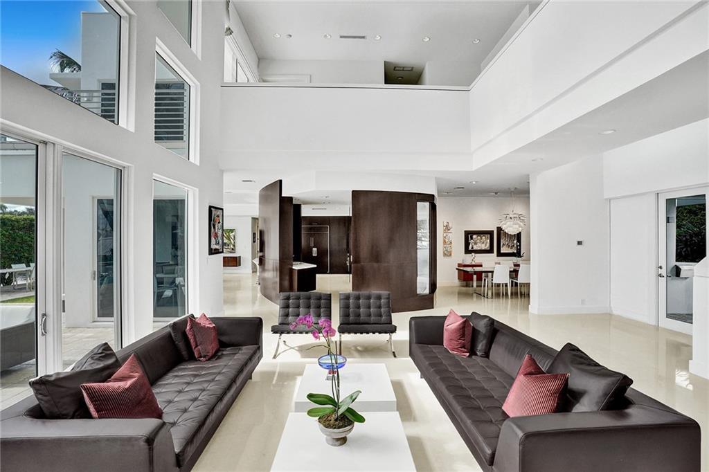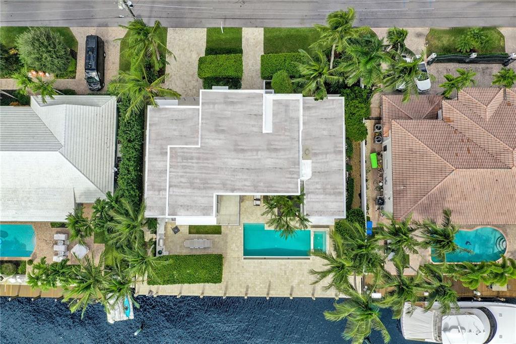 Stunning 5 bedroom waterfront estate in Coral Ridge Country Club. 100’ waterfront on a wide waterway (115’ across) with no fixed bridges and ocean access. Gourmet kitchen with gas range, wine cellar, volume ceilings in living room, impact windows and doors, marble flooring on the first floor and wood flooring upstairs, recessed lighting and more. Upstairs master suite features two walk-in closets, spa like bath and expansive patio with tranquil water views. All bedrooms en-suite (2 bedrooms on first floor including junior master). Outdoor living with pool, spa, summer kitchen and 100’ concrete dock. Southern exposure for the best breezes and sun.