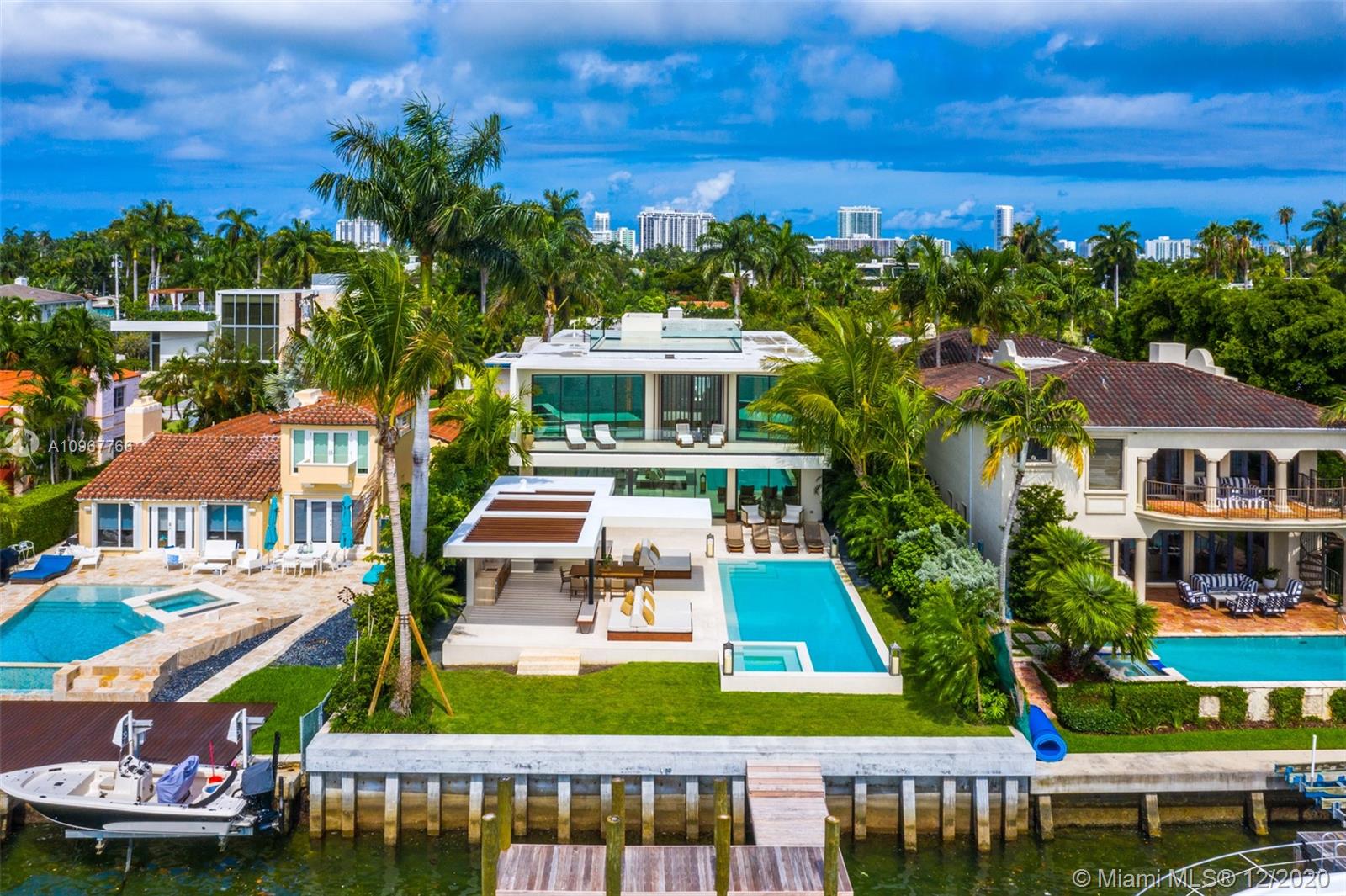 New Construction. Gorgeous 2-story contemporary waterfront home located on the Venetian Islands with incredible views of the Miami downtown skyline, open bay & the most dramatic sunsets in Miami affords an enviable luxury lifestyle in a prestigious, sought-after locale.