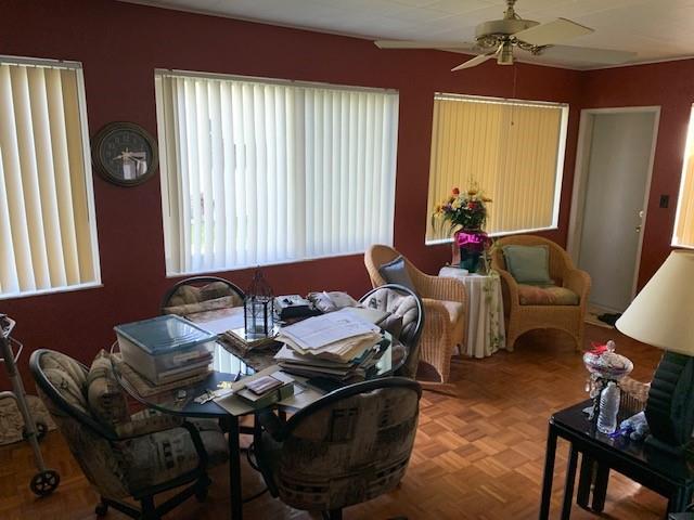 A great 2 bed 2 bath 1 car garage home with loads of potential in the 55+ Leisureville community. Home needs TLC yet has great potential and offers impact windows, screened-in porch, and more. HOA includes golf, community pool maintenance, lawn service, courtesy bus, water bill, roof painted every two years, and house exterior every four years. Enjoy close proximity to shopping, fine dining, movies, beaches, parks, and highways.
