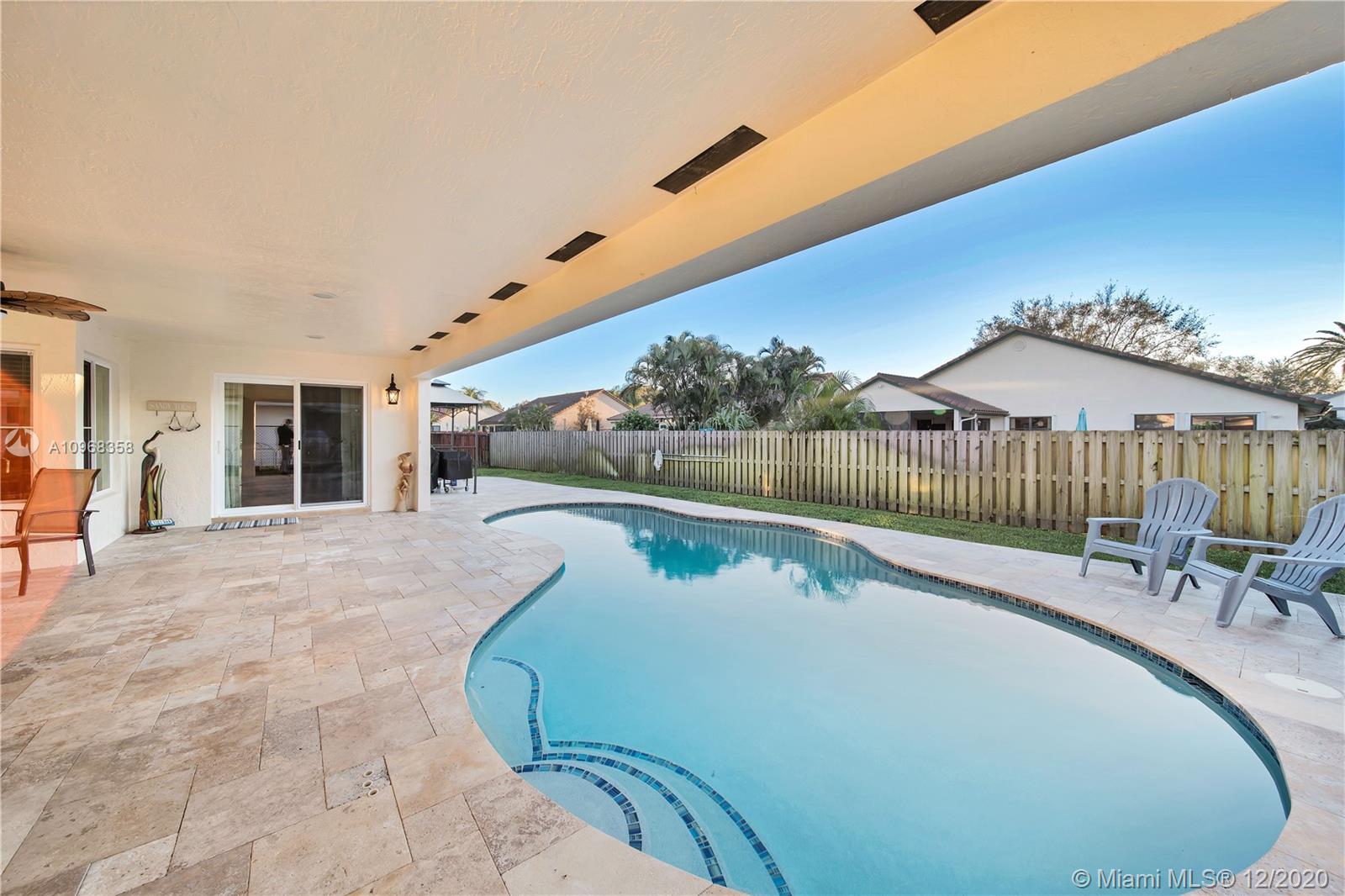 Magnificent, massive Forest Ridge beauty! Completely renovated with outstanding gourmet kitchen featuring huge island, stainless farmer's sink and deluxe appliances, stone counters, & maximum storage. Open floor plan with vaulted ceilings. New IMPACT WINDOWS & doors. New wood-look ceramic flooring. Newer A/C. Master suite has tray ceiling, access to pool & patio, and a fabulous bath with dual sinks, big shower, and lovely round free-standing soaking tub. All closets have organizers. The 5th bedroom, adjacent to master, is currently used as office but could easily be a nursery. Lengthy pavered driveway can hold 6 cars. There's a huge 732 sq. ft. stone covered patio, pretty pool, fenced yard. No polybutylene pipes. EXCELLENT SCHOOLS. Most attractive community entrance in Broward!