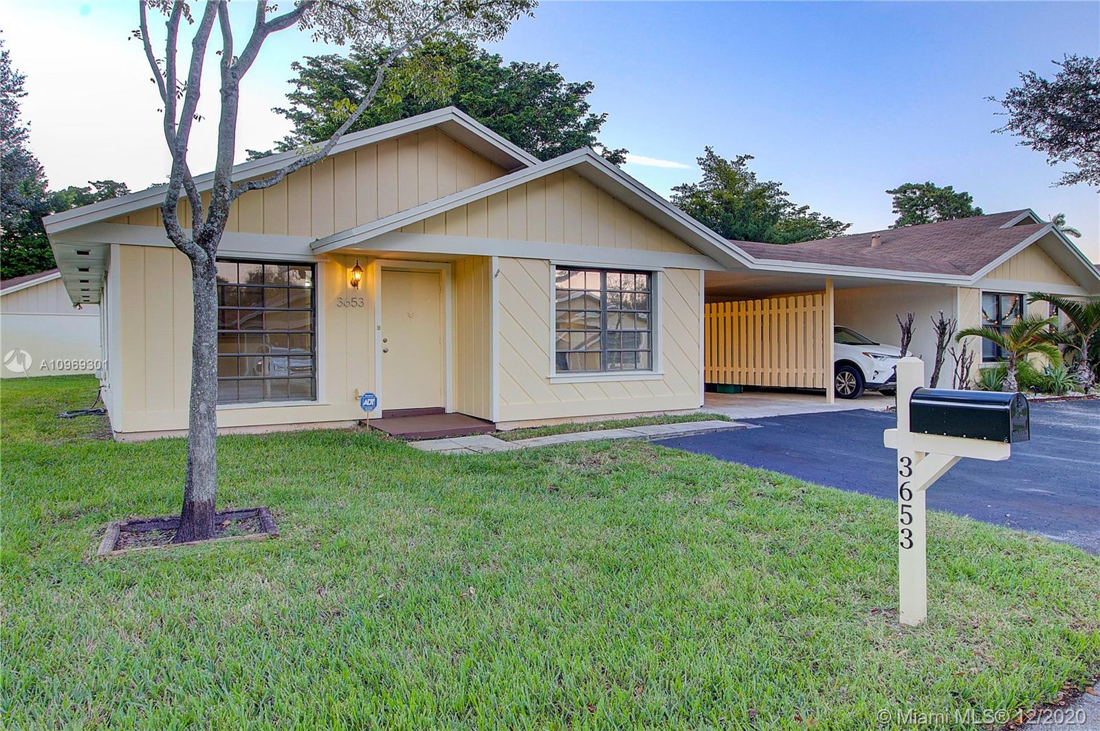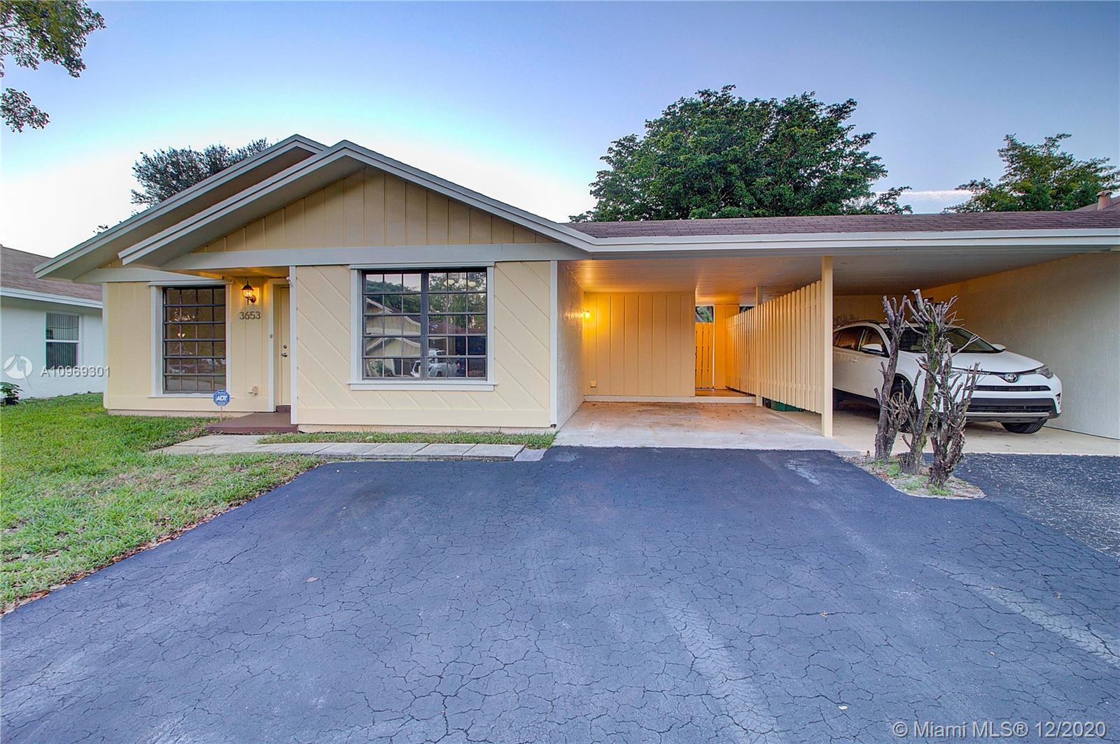 Beautiful corner villa home available at a great price in Davie. This home is centrally located to schools, colleges, shopping, and restaurants. Easy access to I595, I75, FL TPK. Minutes from Hard Rock, Stadium, and BB&T Center. This is a cozy home on a dead end street with tile floors, granite countertops, matching black appliances, updated bathrooms, and private back yard / patio. Beautiful open layout with vaulted wood ceiling. Walk your child across the street to the Elementary School, Bamford Sports Complex, or Davie Aquatic Center. Or, enjoy a day at your community pool. EXCELLENT RATED DAVIE SCHOOLS. HURRICANE SHUTTERS. MUST SEE!!!