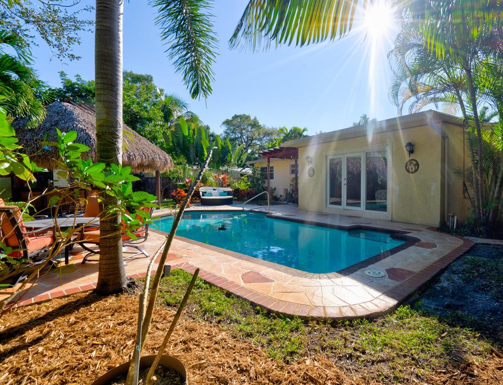 This private tropical oasis is an entertainer's paradise! Open floorplan includes 2 large bedrooms, a bonus room, 2 full baths, spacious living room, dining area, Florida room flooded in natural light, and a laundry room. The fully fenced, private backyard boasts a new tiki hut with a custom bar, pool, 12x10 shed, a pergola, and lush tropical landscaping with an automatic well-fed sprinkler system. The kitchen is equipped with granite countertops, tile backsplash, stainless steel Whirlpool refrigerator and stove, and a Bosch dishwasher. Just a few notable features include a new 4-ton Rheem AC (2019), new ductwork (2020), and an 8,398 SqFt lot with ample parking for a boat and RV. Located near restaurants, entertainment, and I-95, 595, 441 and the Turnpike for easy commuting. No HOA!