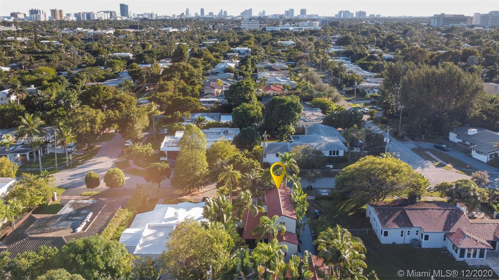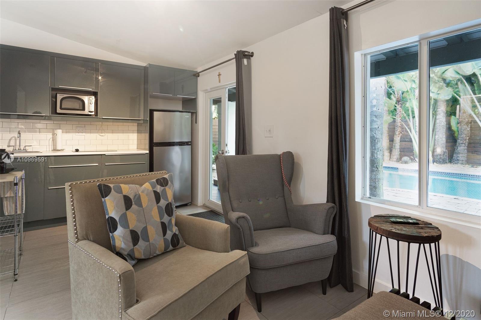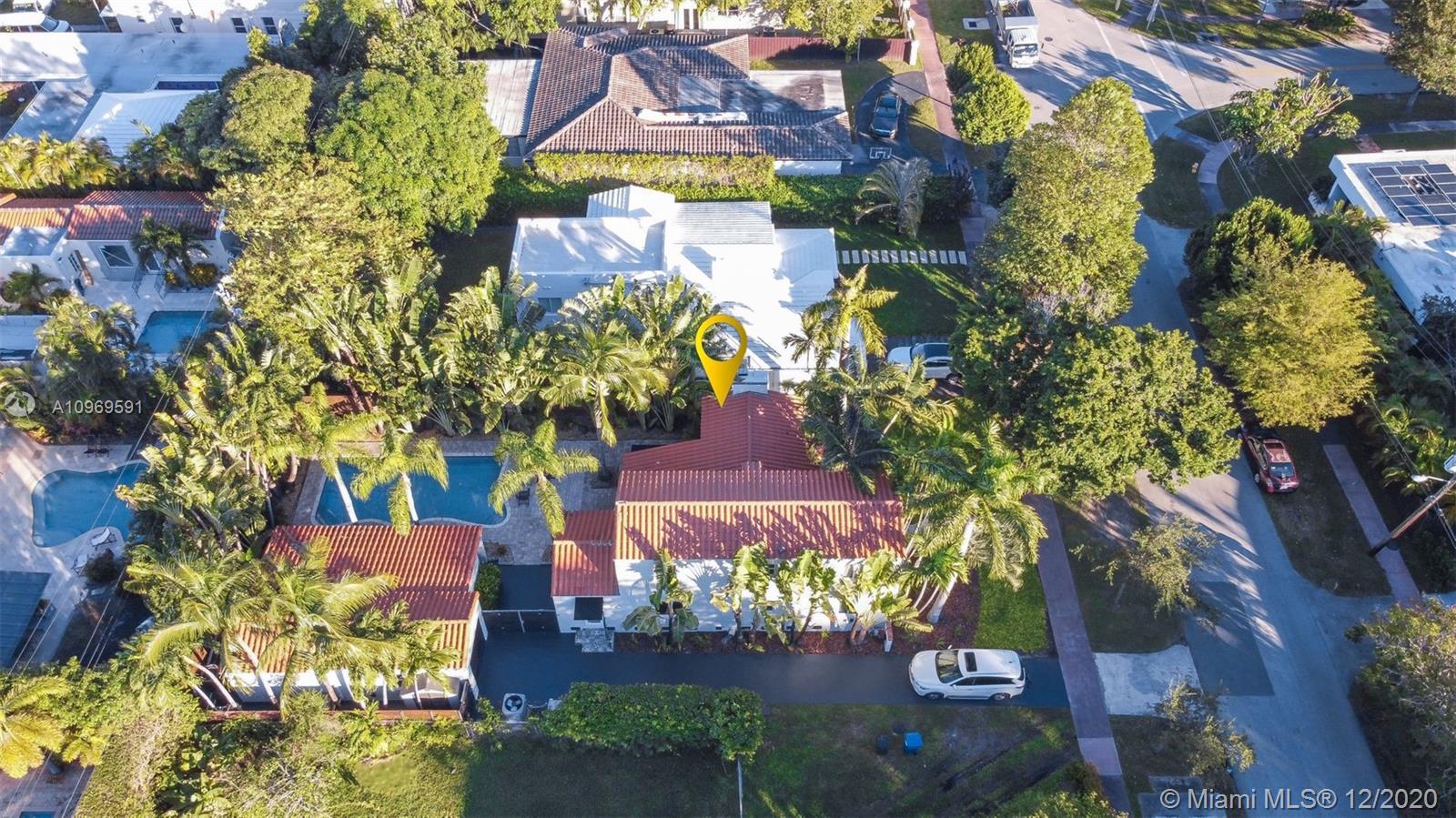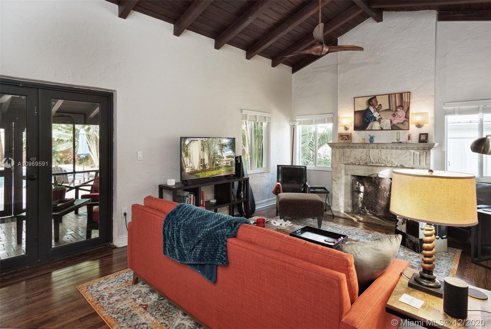 Beautifully updated Miami Beach Mediterranean pool home with guest house. Located on a quiet, tree-lined street, meticulously maintained & updated, the main house features vaulted ceiling with wood burning fireplace, wood floors, beautifully updated kitchen/dining room, powder room & bedroom suite. Upstairs features two bedrooms and one bath. French doors in Living room and Dining room lead to screened-in patio over looking the pool. Impact windows throughout. Natural Gas. Resort-like backyard- with mosquito control system- is landscaped with variety of palms & tropical plants, surrounding custom designed heated pool. Detached guesthouse includes 1BR/1BA cottage & studio. 20min walk/8min bike to beach. 2 blocks to Ritz Carlton residences. Walking distance to houses of worship.
