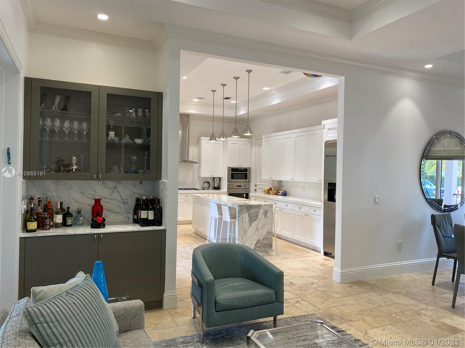 Located on special South Side of Bay Harbor Island’s. This is a stately residence with great floor plan. Option for the primary suite to be upstairs or down stairs, both overlooking heated pool/jacuzzi & grand patio area with fully equipped summer kitchen & covered terrace. For those looking to escape and find a private oasis with outdoor space...this is it. All rooms lead to outdoor entertainment areas. If you choose to spend your time inside...plenty of options: living room with built-in bar; kitchen with gathering area; or, relaxation in expansive family room. Other features include high ceilings, natural gas, 2 car garage, security system, surround sound, hurricane impact windows. Located in A+ school district, blocks from beach, fabulous restaurants & glamorous shops.
