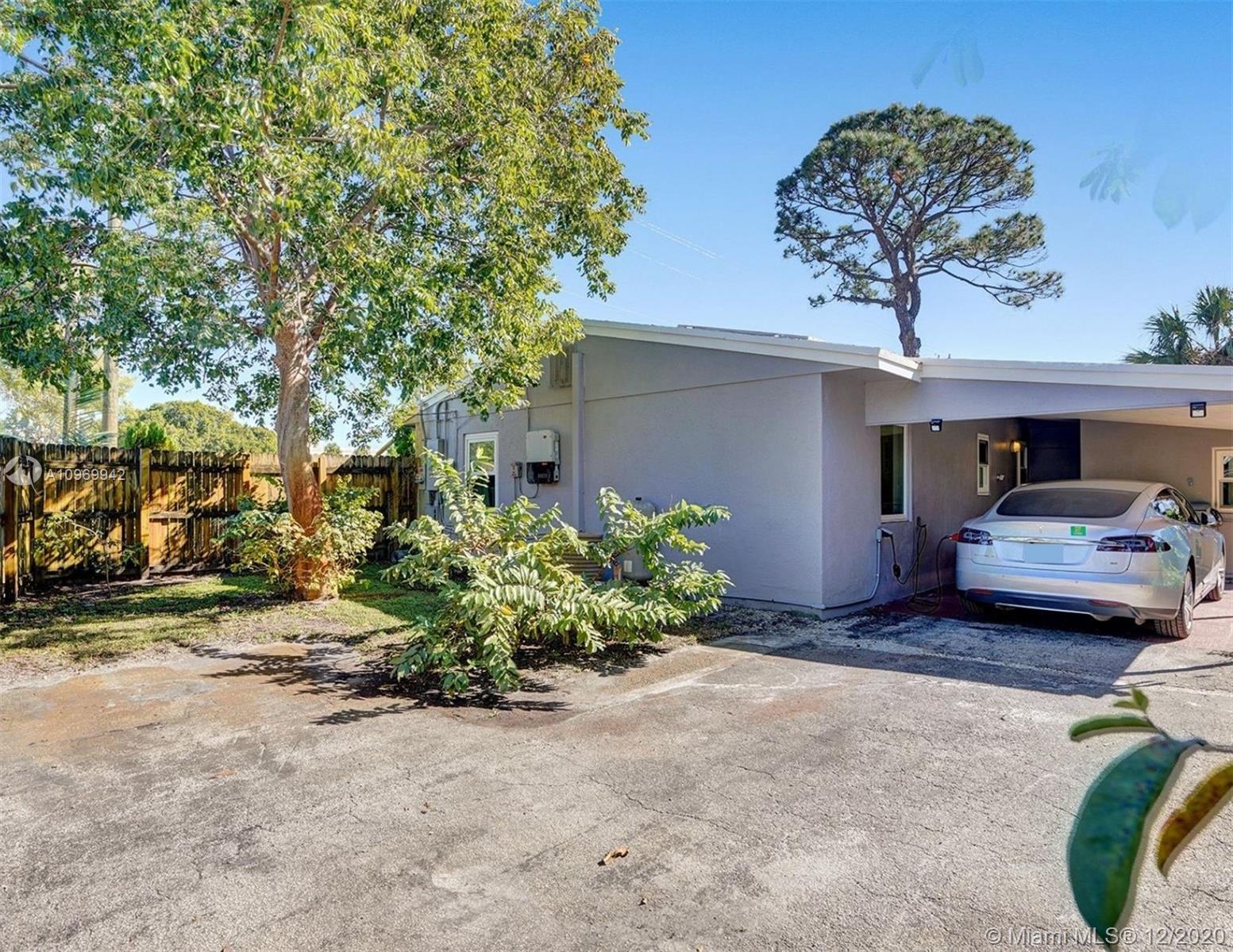 Perfect starter home just outside Downtown Fort Lauderdale. Move-in-ready, freshly painted inside and out with neutral colors. Features updated kitchen and baths. Equipped with solar power, hurricane impact windows, and doors. Newer AC with laser germ killer, Water softener system for drinking, and sprinkler. The sprinkler system operated from a well. All nestled away on a private oversized corner lot. Featuring an inviting tropical backyard; great for entertaining with a lush landscape and a beautiful fountain. Completely fenced for privacy and secured with an automatic gate. Great location: Close to shops, restaurants, and easy access to I95/595/ Turnpike making the commute a breeze. Cozy sunroom with original fireplace. Convenient carport.