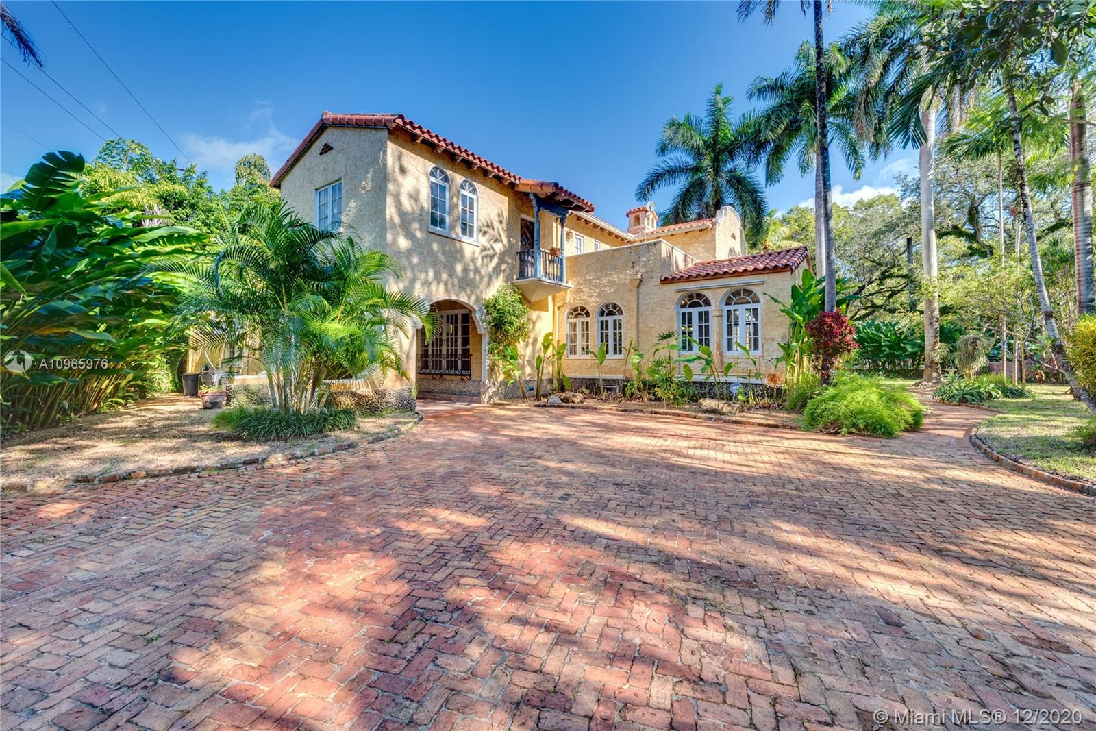 New Listing. Sitting on a large, 11,750 ft. corner lot at Granada and Coral Way, this classic 1925 mansion is ready for a new family. Nestled under huge oaks and palms, this 5 bedroom/4.5 bath (4/3.5 in main house + maid's quarters) home has 3,451 sq. ft. and has charm and character at every turn. Foyer entry, with fireplace spacious living room with Chicago brick floor. The family room has French doors to a terrace and garden. Formal Dining room. The breakfast room and kitchen at the rear with access to a maid's quarters next to the carport. Upstairs find the master suite with three other bedrooms plus an outdoor patio. FIRM PRICE. Easy to show