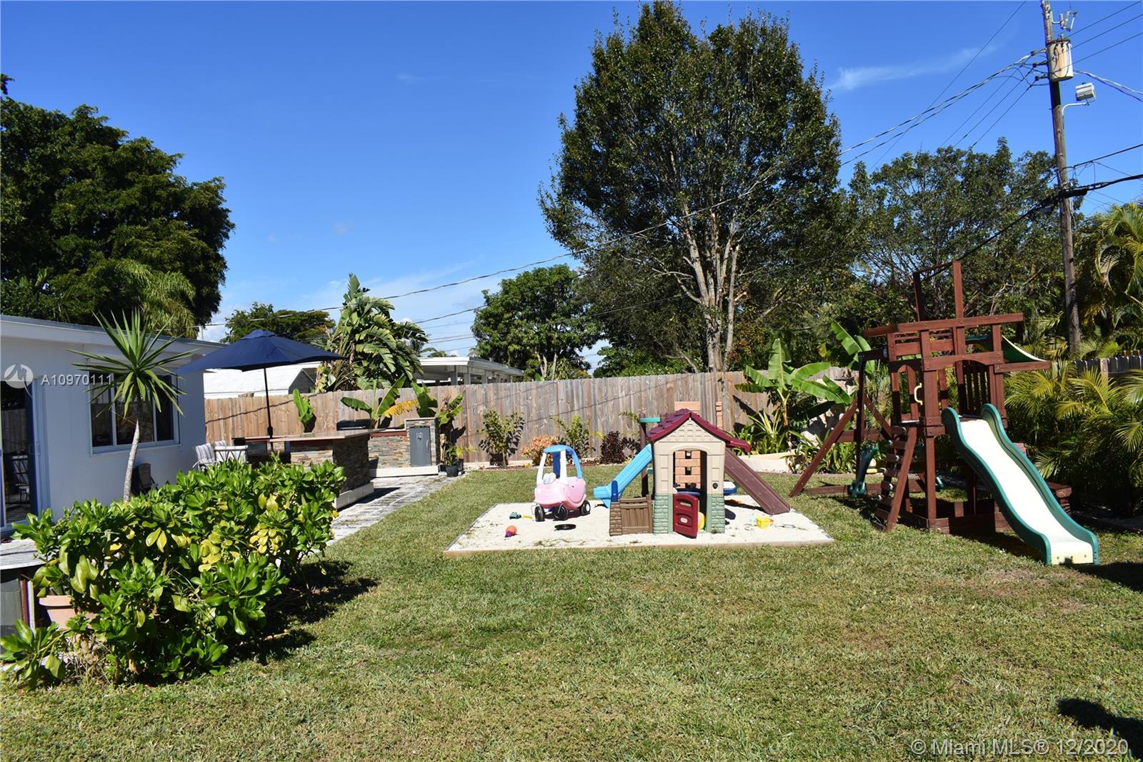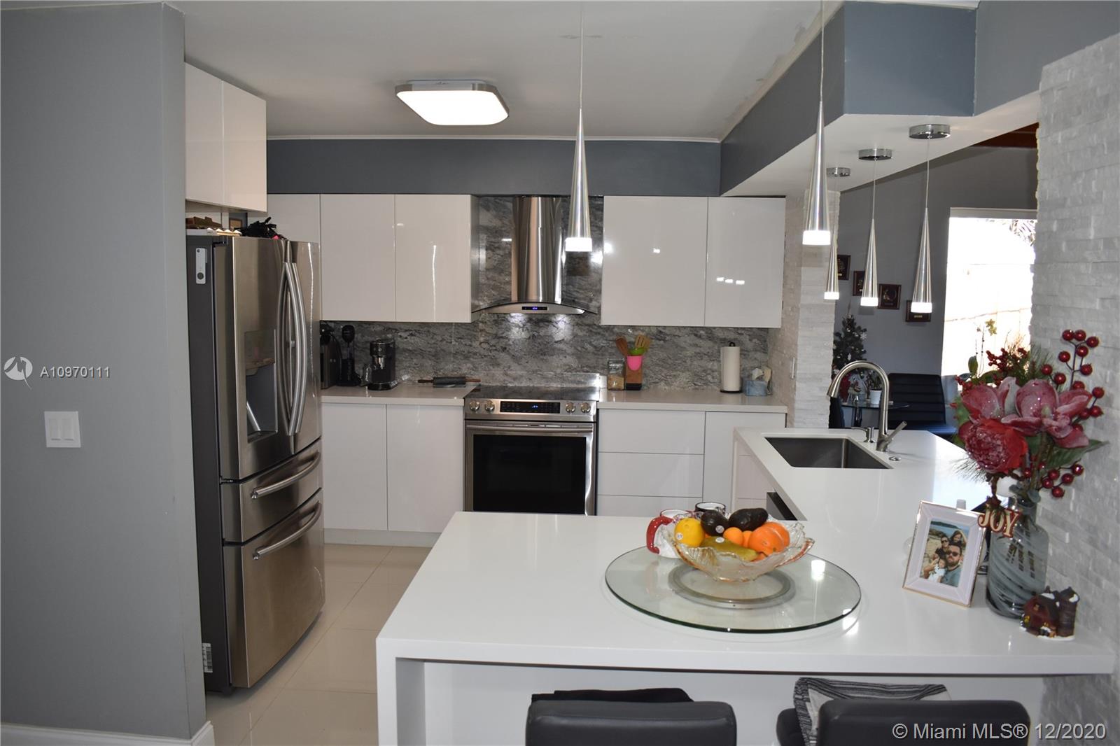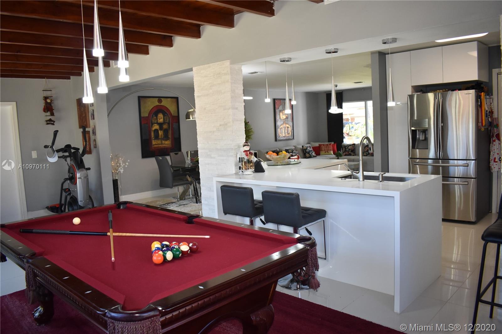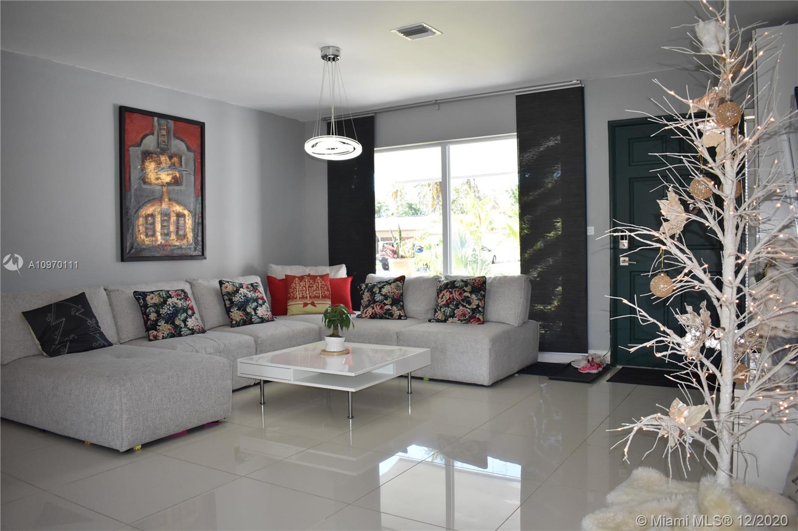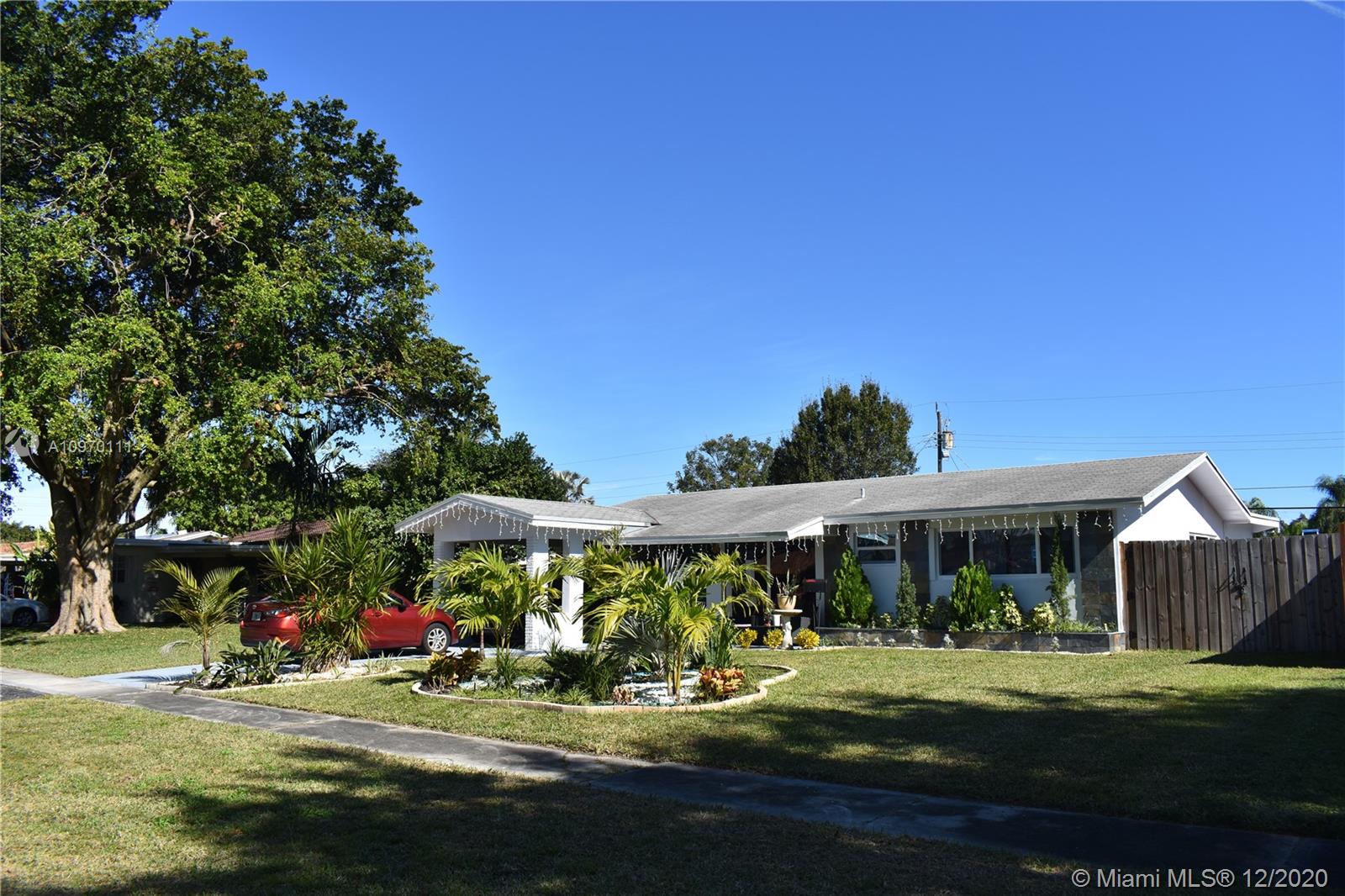 Great home in Hollywood Hills, totally renovated, with a large and completely fenced-in yard. Located on a trafficless street close to shopping plazas, places of worship and major highways. Painted in and out with many improvements. Park your car in the carport and enter into a large living-dining-family rooms combination and a brand new open kitchen. There is white porcelain flooring all around, newer A/C conditioners and hurricane proof windows and sliding door. A very large yard will allow for a pool and some more. House is sold in AS IS condition with right to inspect.