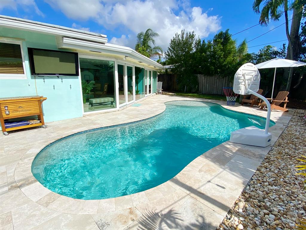 Margaritaville found in highly sought after Garden Isles in Pompano Beach Beautiful, tropical 2-2 + office 2 car garage pool home for sale. 1900 square ft of open living/dining area with large bedrooms with office that could be made into a 3rd bedroom. New pool(salt gen, heated Lifetime pebble tech finish) New travertine pool deck New metal roof (lifetime) New impact windows New tankless gas water heater New blinds (some power) New garbage disposal. lot is 7502 sf. Tax bill is not accurate. The real taxes on the property are $3305.93 per seller.