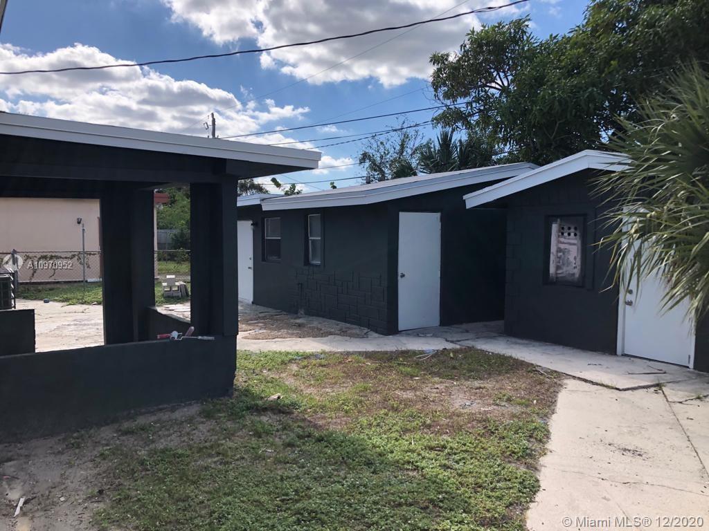 Newly renovated Duplex in Fort Lauderdale. The front house consists of 4 bedrooms and 1 bath with washer/dryer inside. There's plenty of room to add another bathroom in the main house. Second detached house in the back consists of 1 bedroom and 1 bath with a full kitchen and bathroom. Both houses have new roofs. Modern kitchens are designed with shaker style cabinets in a dark grey with gold accents handles and white quartz-like countertops. Upgraded bathrooms consists of sleek Soho Mulberry tile accented with super white grout and Carrera marble shower floors. Main house has central AC. Backhouse has wall units. There is a third structure with a pitched roof that is used as a storage building. Great for a family or investor. Brand new appliances to be installed before closing.