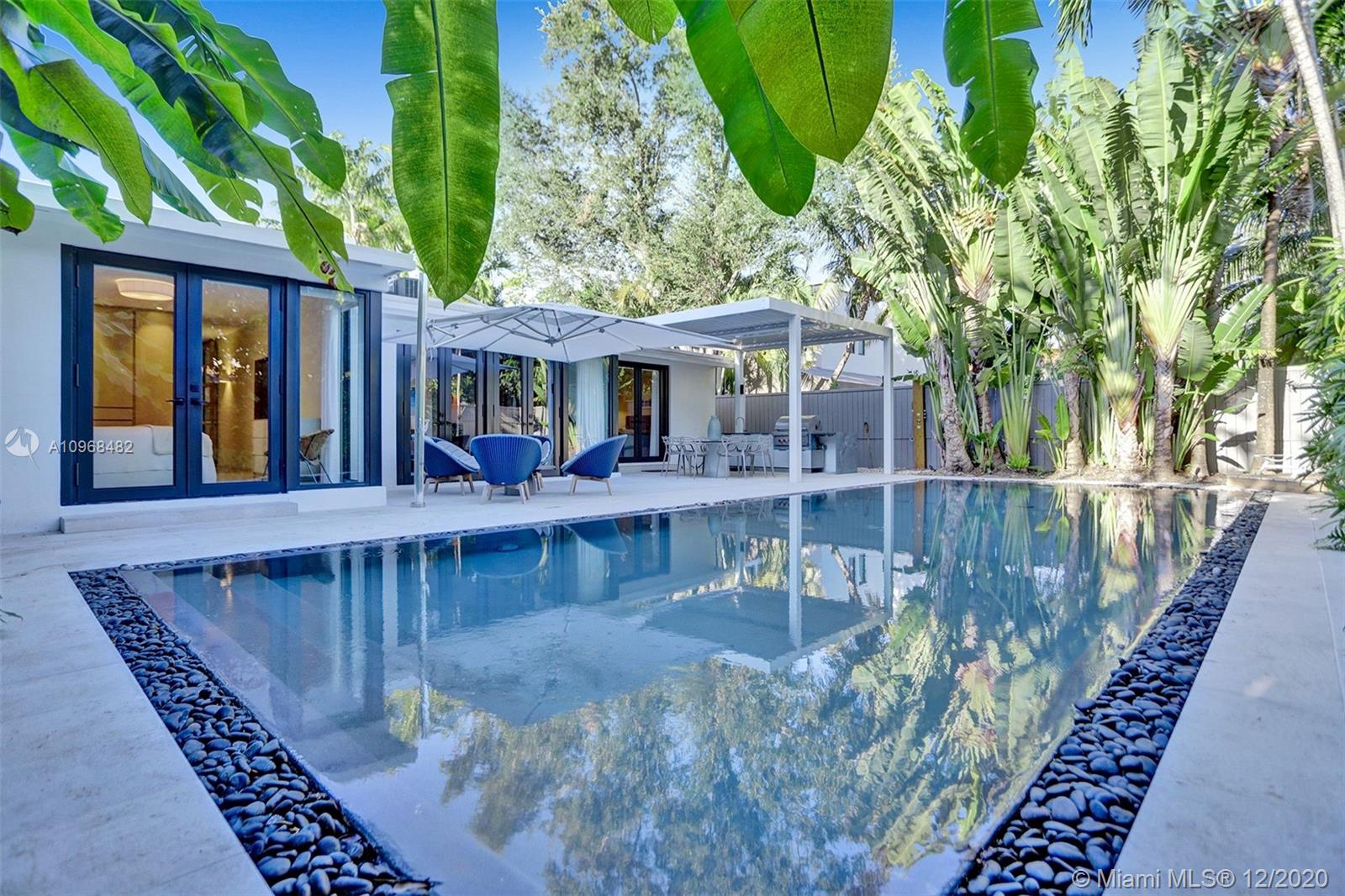 Charming 3 Beds|3 Baths completely remodeled home in Miami Beach! New lux-finish white Terrazzo flooring throughout the house compliments with the lush green plants that surround the home, giving it a sense of a tranquil fresh space. The spacious and open kitchen allow owners to interact among the living areas, along with the walled front entrance that opens to a private court yard. Bathrooms have quality marbled & mosaic w/Euro fixtures. The master suite has its own private access to the pool! All interior doors & closets are artisan handcrafted. The heated pool was completely redone including an auto leveling pump system, along with an outdoor summer kitchen that is perfect for entertaining. Come take a look, you'll quickly fall in love!