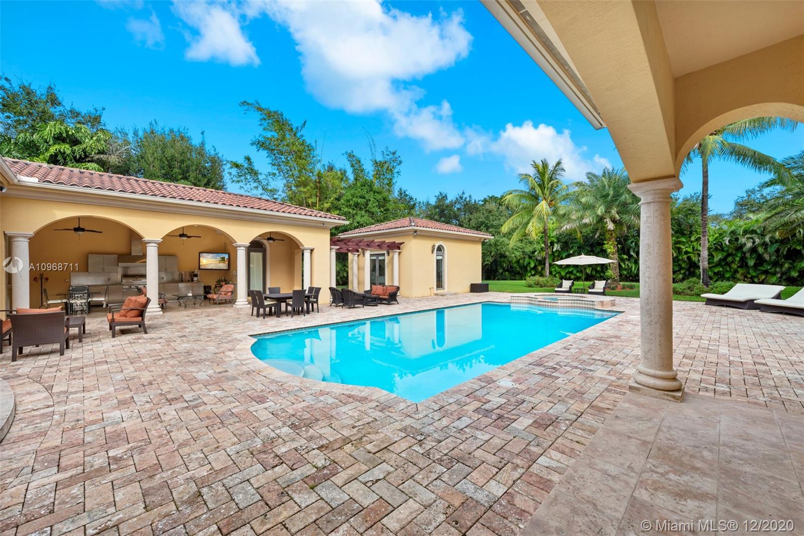 Impressive & stately masterpiece on a gorgeous deep acre on desirable quiet & pretty N. Pinecrest! Exemplary details w/ fine finishes & cutting edge modern technology! Exquisite & elegant! Showcasing soaring 18 ft ceiling! Venetian stucco, handcrafted moldings! Marble & wood flooring Stunning updated gourmet kitchen w/ high-end appliances & gas range! Fabulous floor plan Lavish master Formal library Spectacular 20x45 open inviting pool /spa area! Sep guest house with living room & kitchenette. Additional cabana w/ full bath. Full summer kitchen! Impact glass windows & French doors!Fireplace & fountains!Sophisticated camera-security system Magnificent grounds.Great family compound for grand-scale entertaining & family comforts! Kindly provide 24 hrs notice for appts.SF larger than tax roll.