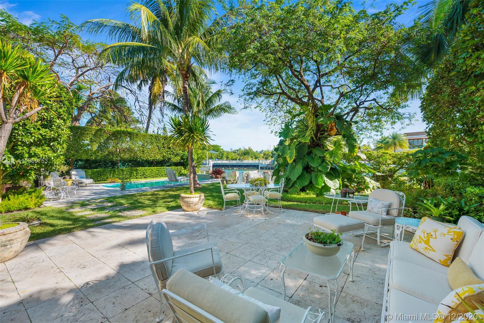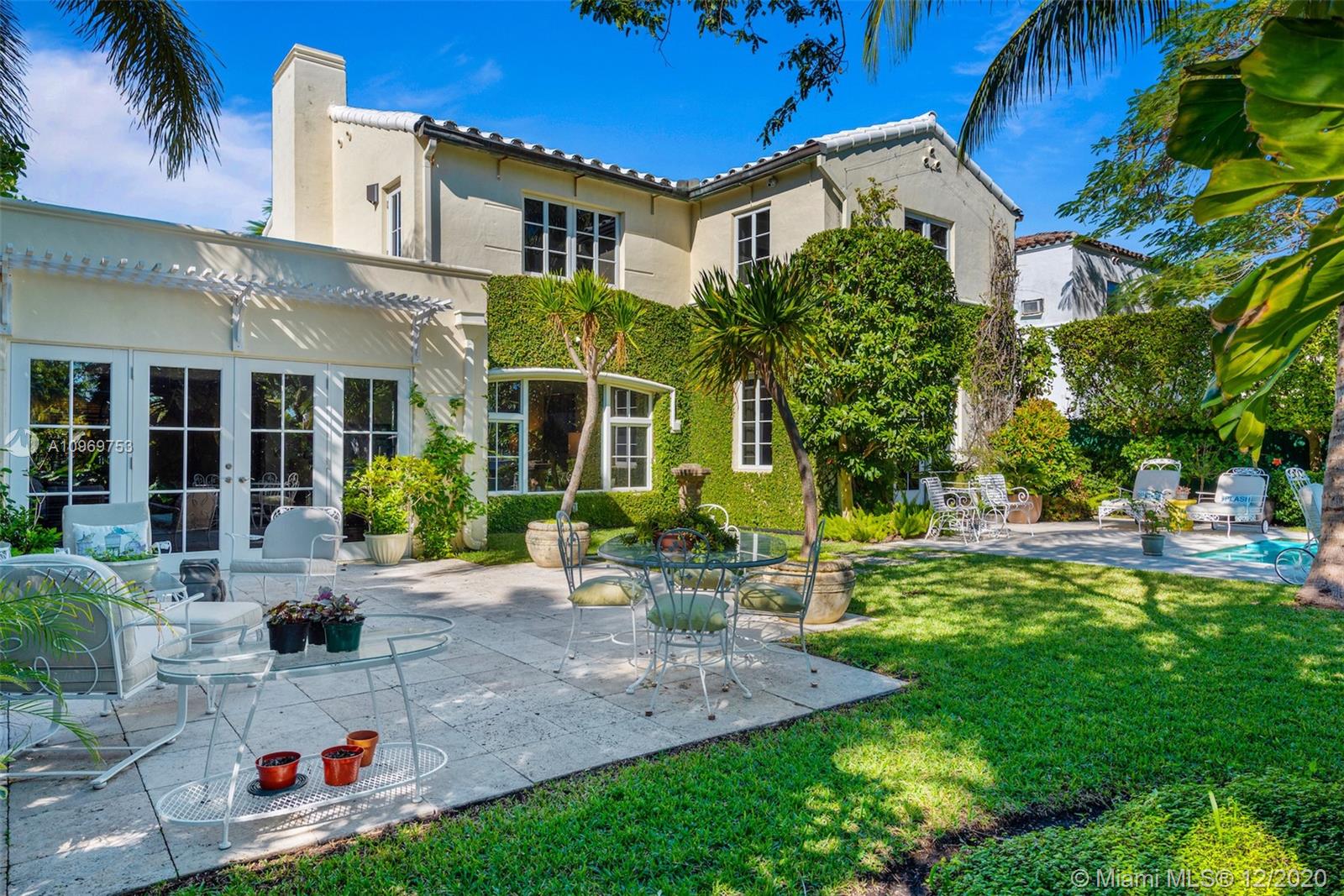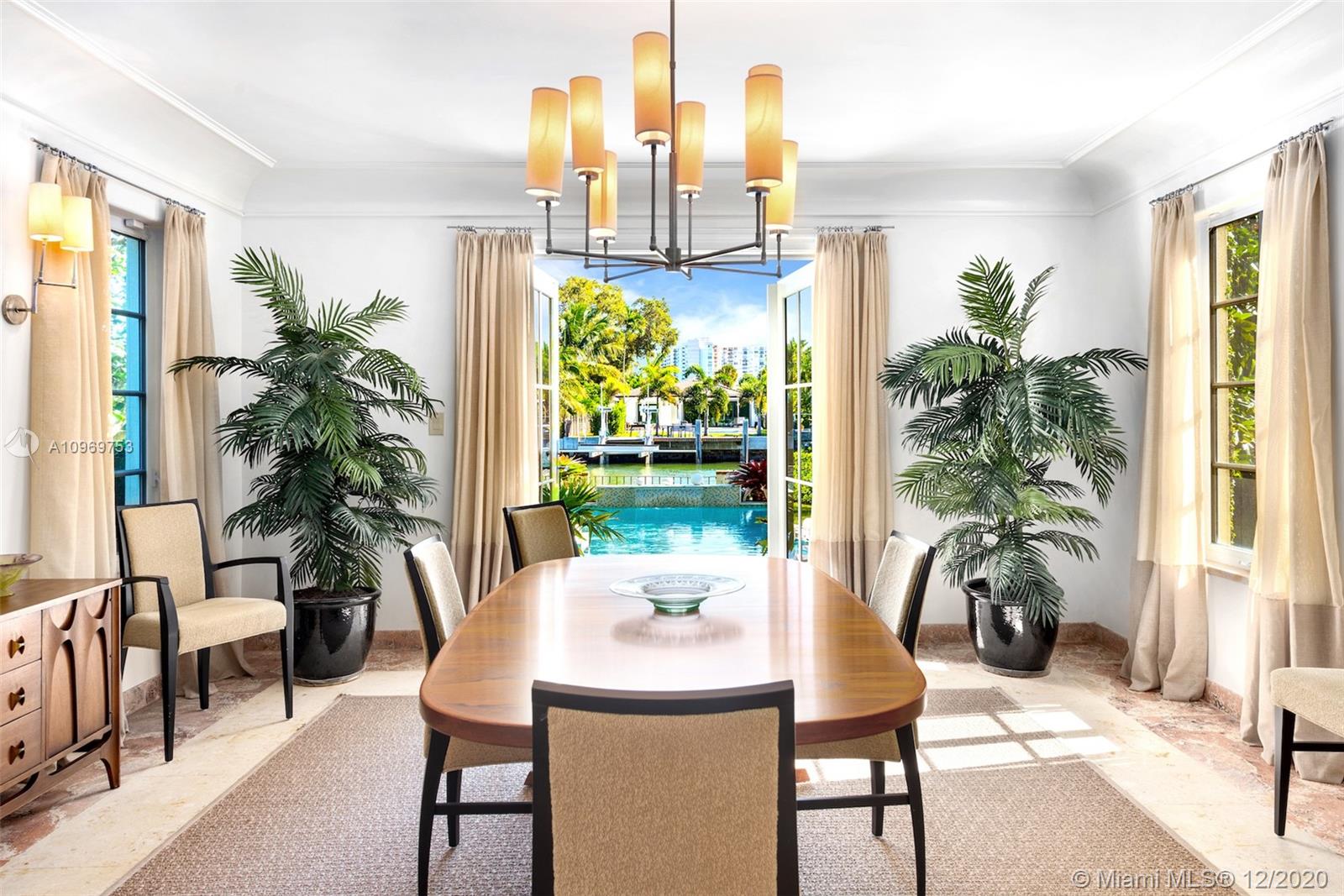 Ideally situated on oversized nearly 10,000 SF waterfront lot, this gorgeously renovated 2story Deco dream awaits its new owners. Residence is fully gated & lushly landscaped for the utmost privacy on 65ft of navigable waters. Home features rarely available 4,278 total SF & 5bd + FamilyRm floorplan (easily convertible to a 6th bd/1st FlrMstr). Once inside, bright&light living spaces feature coral tile flooring, unique fixtures & high-end finishes throughout. 3bds up, each w/ ensuite Bath + separate stairway leading to semi-detached 2 add’l bdr/office areas w/ full bath. Master suite offers its own terrace! Add'l offerings include impact glass,2 CG & full home surveillance system. Relax after a long day by the courtyard fountain,heated saltwater pool,or your very own coral tiled patio&dock!