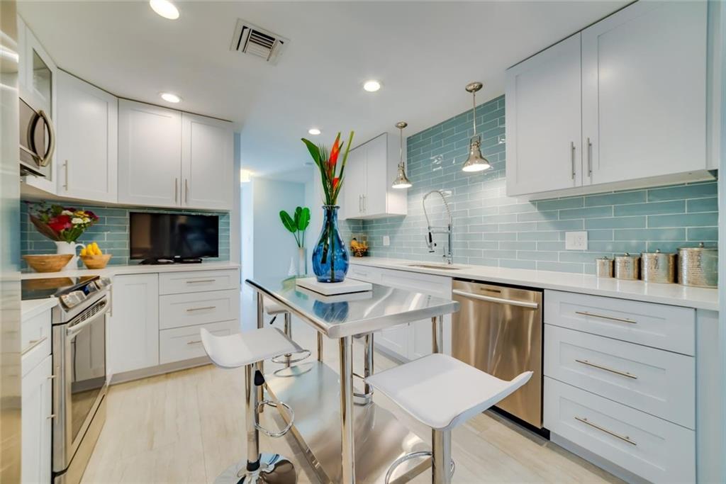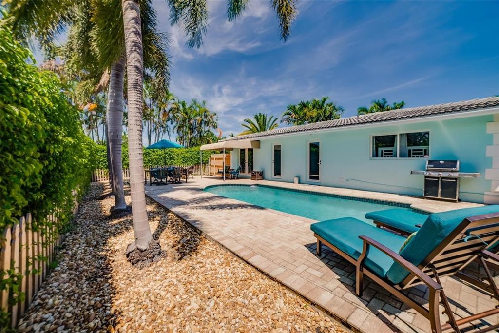 ABSOLUTELY STUNNING!!!!! Less than 1 mile from the beach! Spectacular 3 Bed, 3 Bath, split floor plan, Key West Style contemporary home. This home offers everything one could possibly desire. ALL IMPACT WINDOWS, All white custom kitchen with SS appliances and quartz counter tops , All bathrooms have been beautifully updated. Large 24"x36" porcelain tiles throughout. Exterior features a private outdoor space, fenced in backyard, underground heated pool and luscious landscaping. Walking distance to all major shopping, THE BEACH, dining & entertainment needs. You better make an offer on this home before BOOM... She Gone! A/C, Appliances, Water Heater all 2016. Pool heater is 2018.
