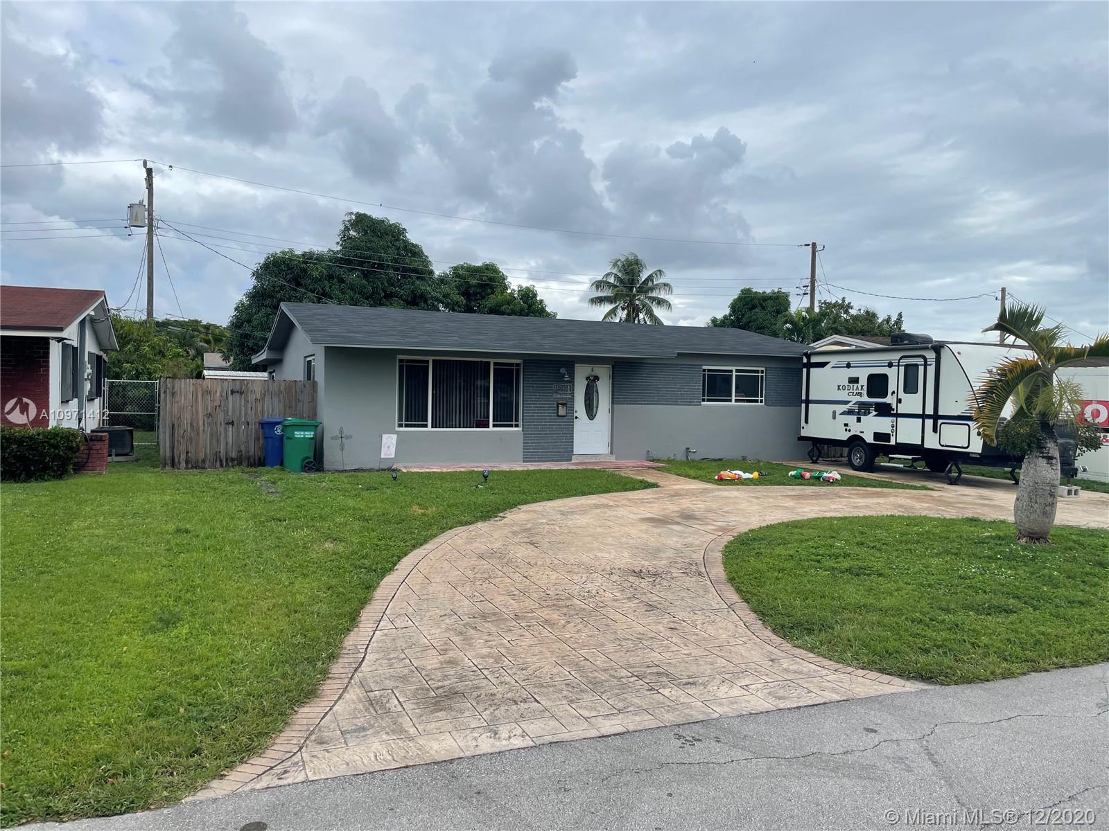 Spectacular 3 bedroom1 bathroom home, freshly painted. New roof 2019, AC 2018, water heater 2019. Circular driveway, , tile floors, upgraded bathroom and kitchen with stain steel appliances. Big backyard with space for a pool and family gathering. Near Florida's Turnpike Expressway and Miramar Pkwy. "NO ASSOCIATION". Make your appoitment today!