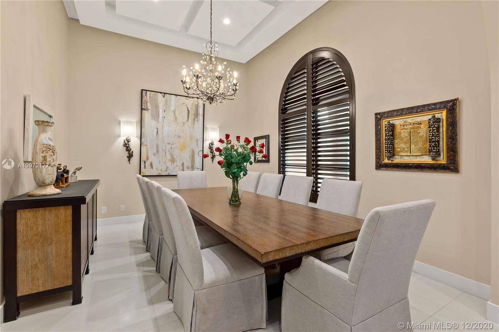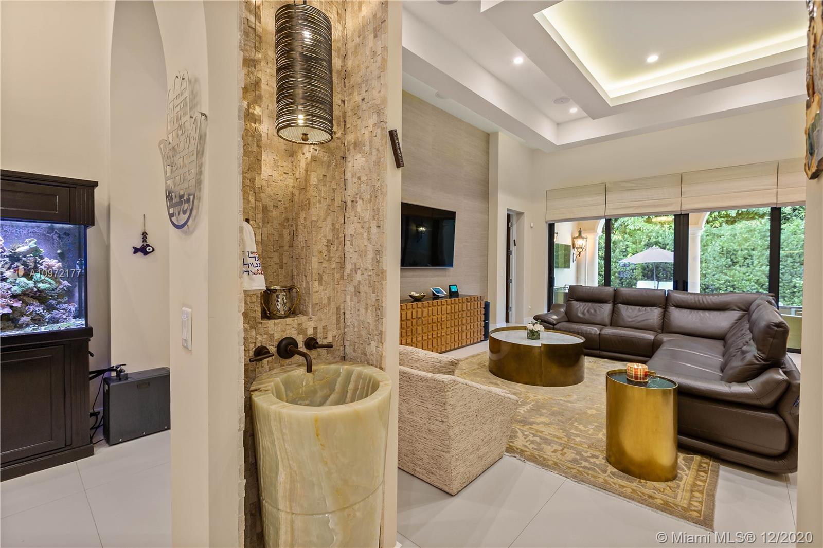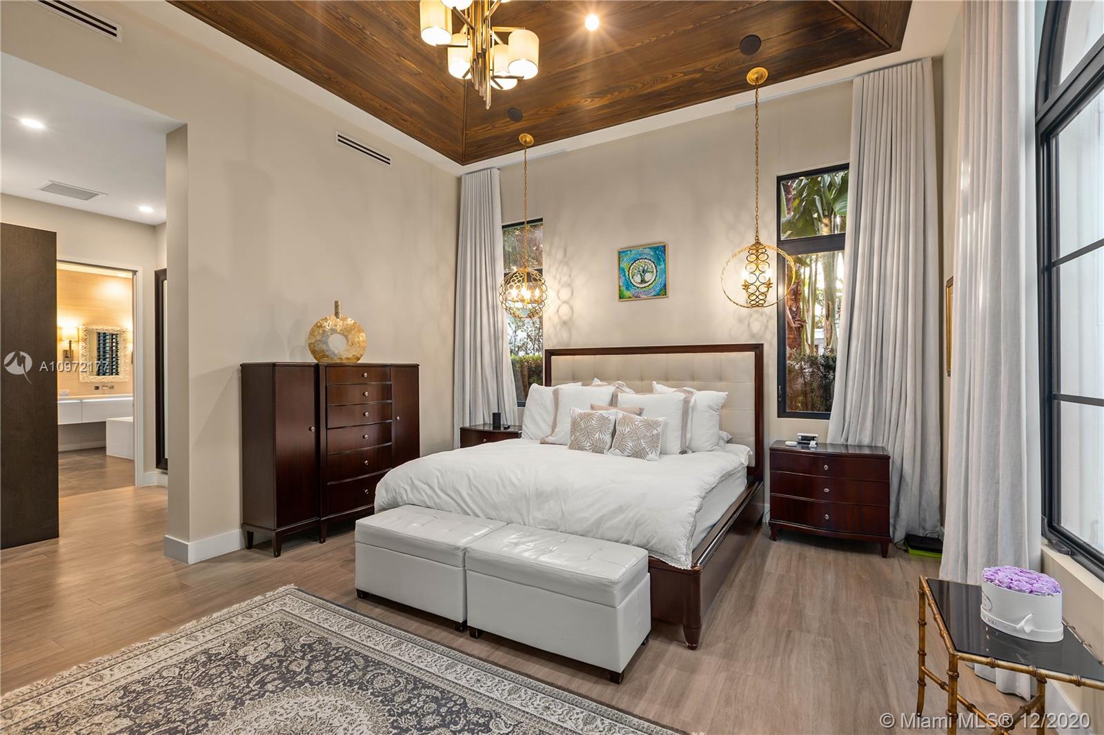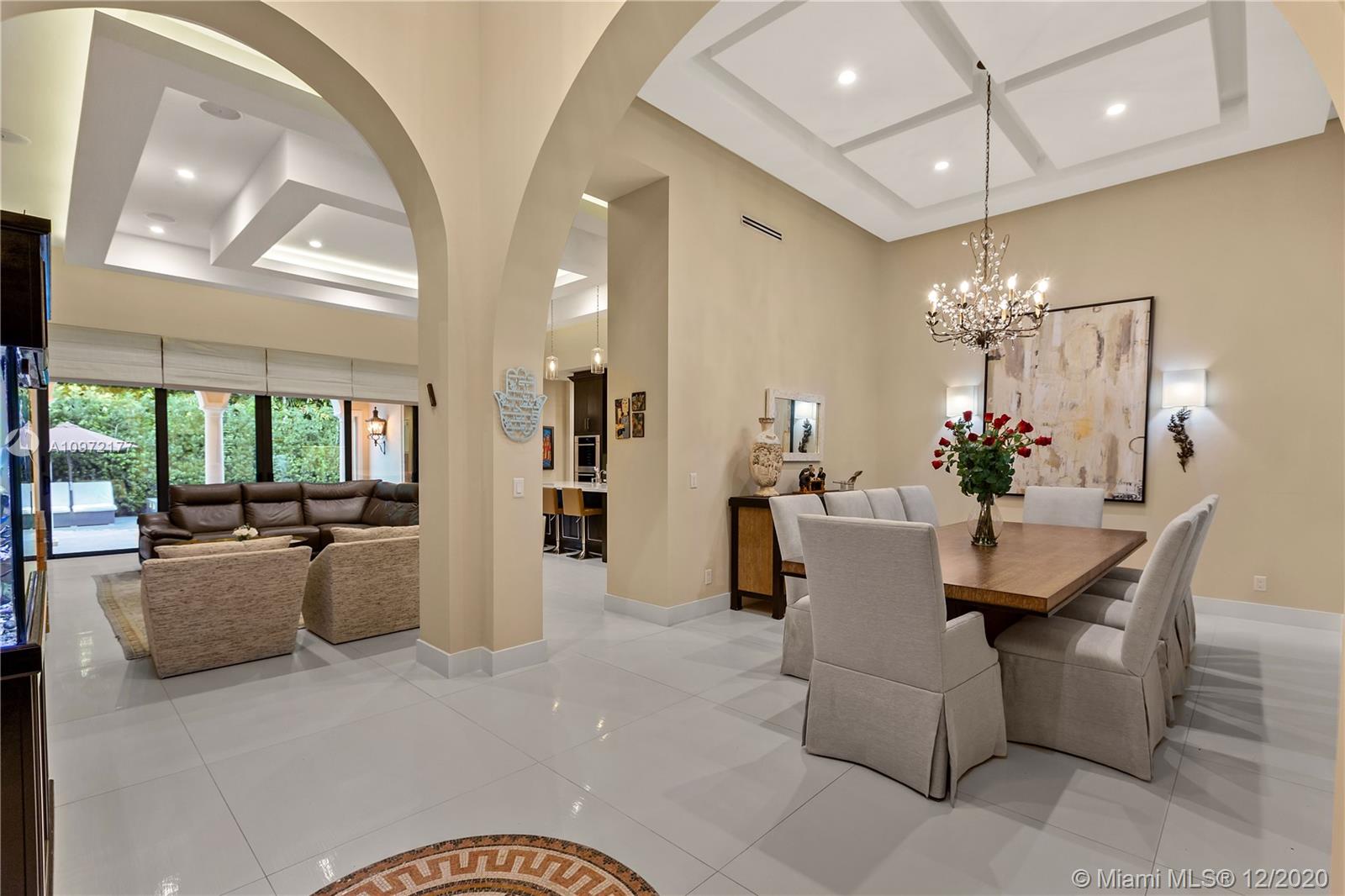 Fabulous custom built home in Bay Harbor... This smart home has everything; 5-bedrooms, 6-baths, each bedroom has en-suite bathroom, bright open floor plan with 14-foot coffered ceilings, gas stove, kosher kitchen, indoor laundry, & security cameras to start. The home has a circular driveway and a gated backyard with a covered patio, BBQ area, pool and hot-tub with smart controls. Impact windows, 2-car garage with epoxy floors. In an amazing neighborhood. This market is hot, don't let someone else beat you to it.