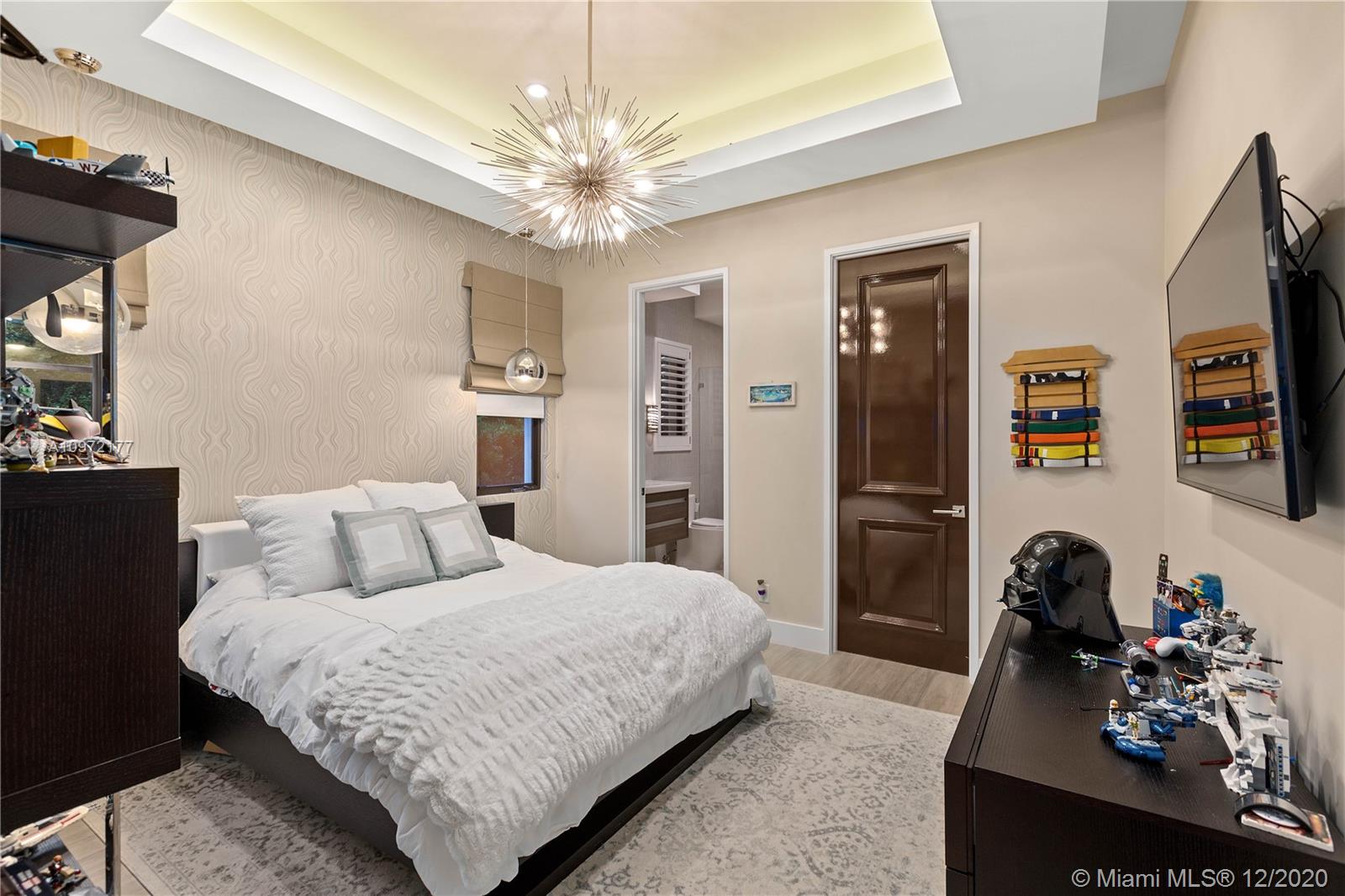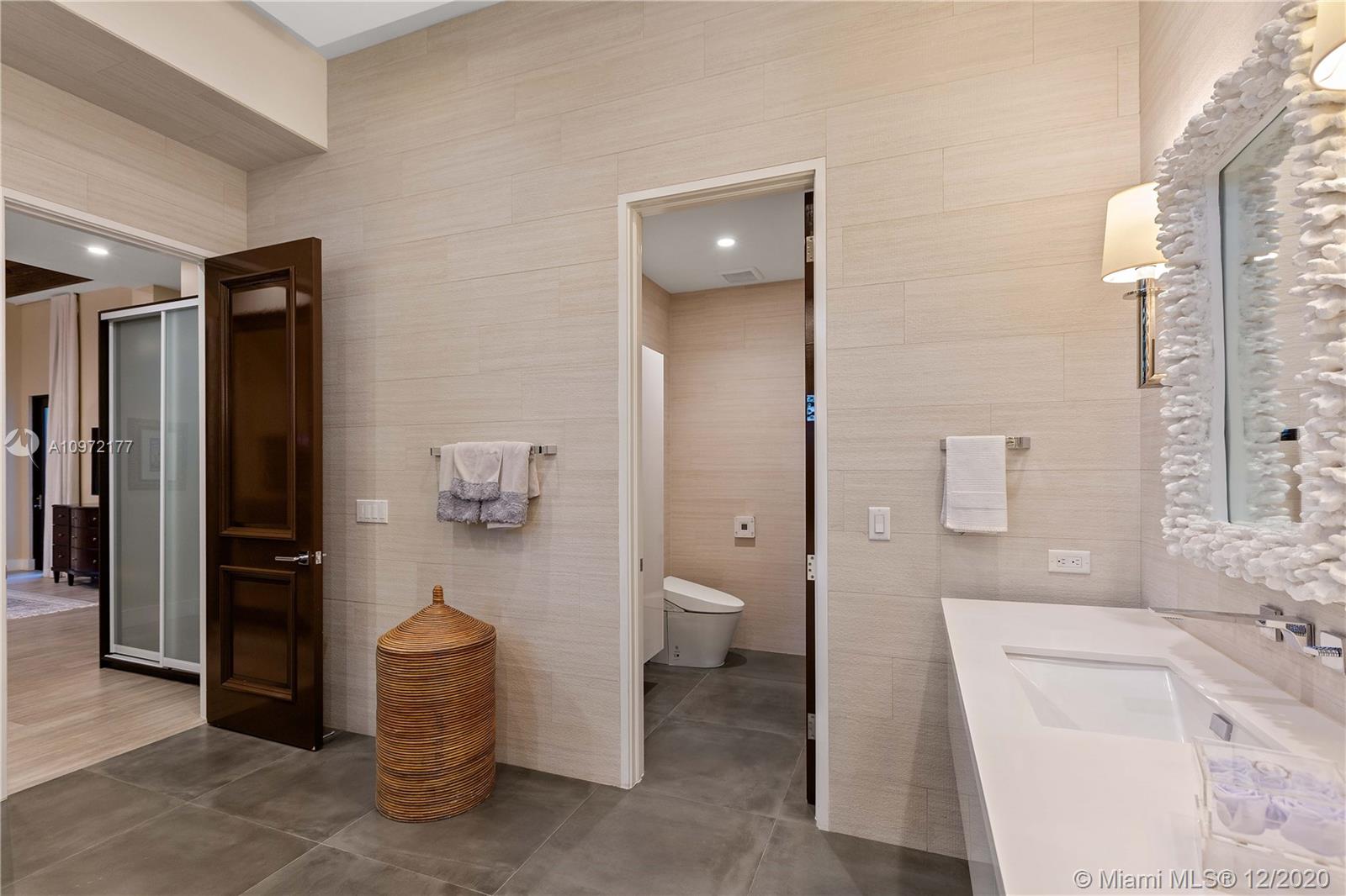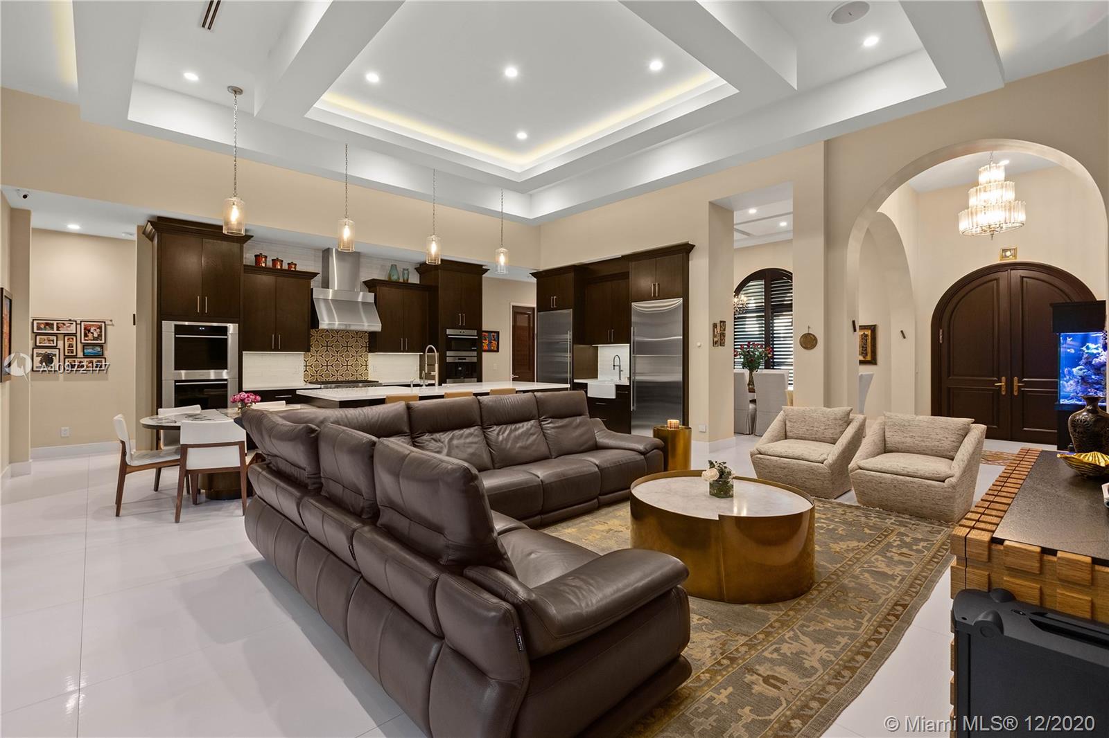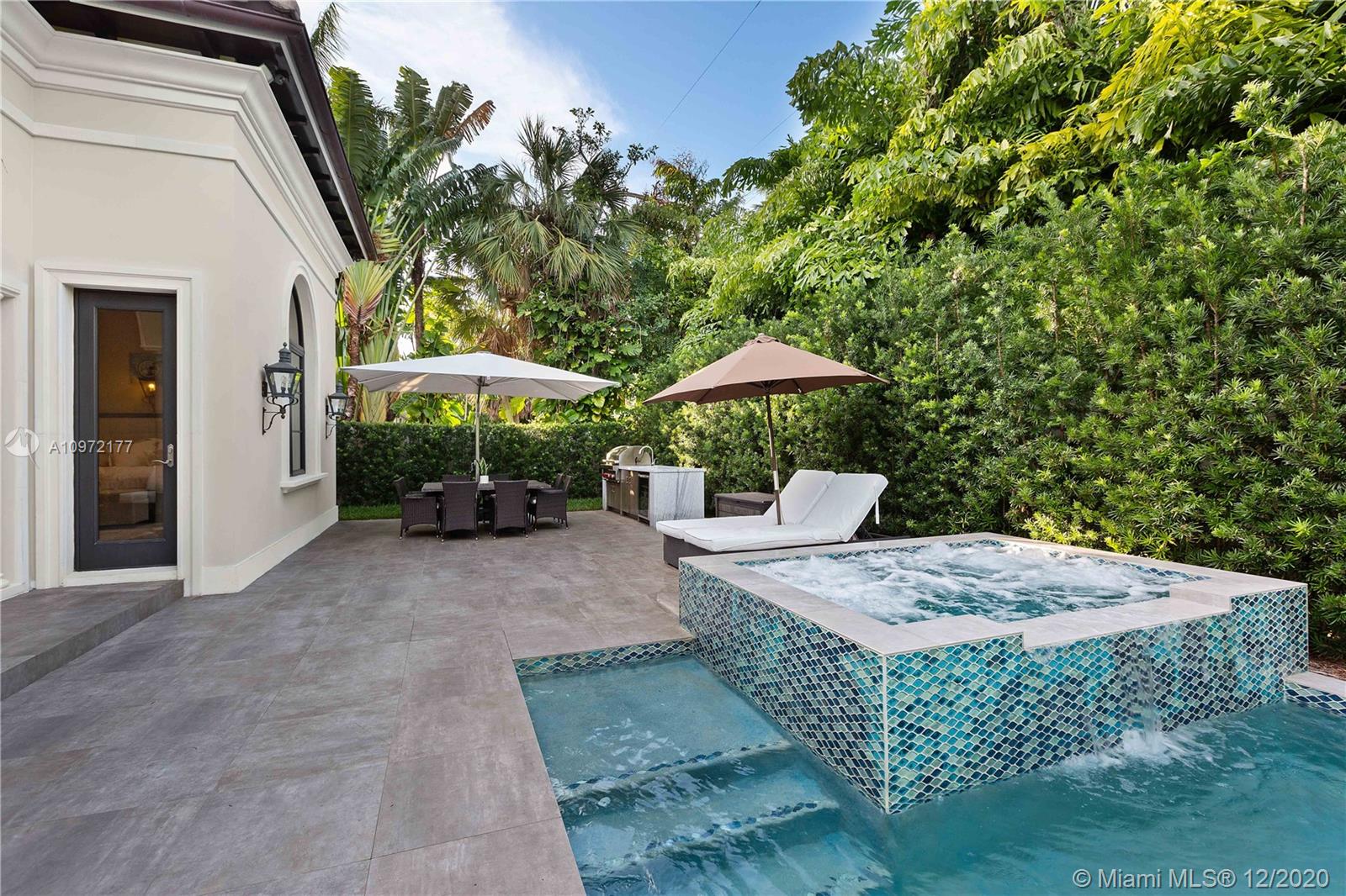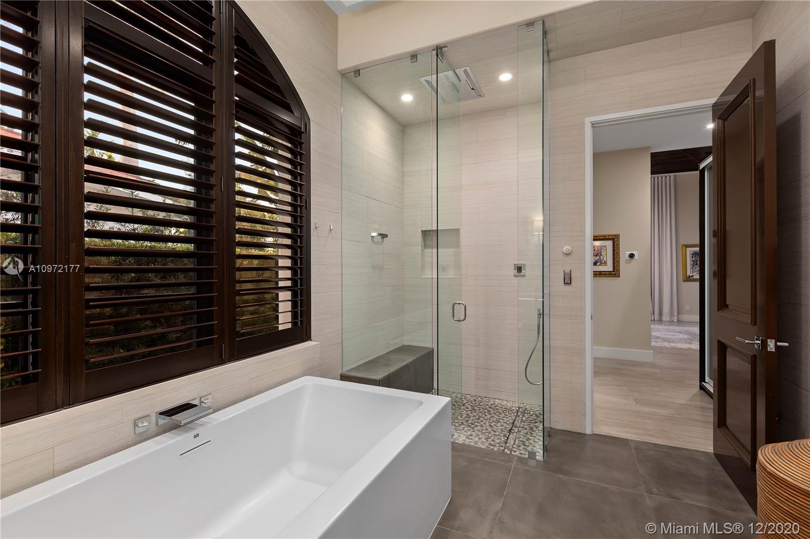 Fabulous custom built home in Bay Harbor... This smart home has everything; 5-bedrooms, 6-baths, each bedroom has en-suite bathroom, bright open floor plan with 14-foot coffered ceilings, gas stove, kosher kitchen, indoor laundry, & security cameras to start. The home has a circular driveway and a gated backyard with a covered patio, BBQ area, pool and hot-tub with smart controls. Impact windows, 2-car garage with epoxy floors. In an amazing neighborhood. This market is hot, don't let someone else beat you to it.