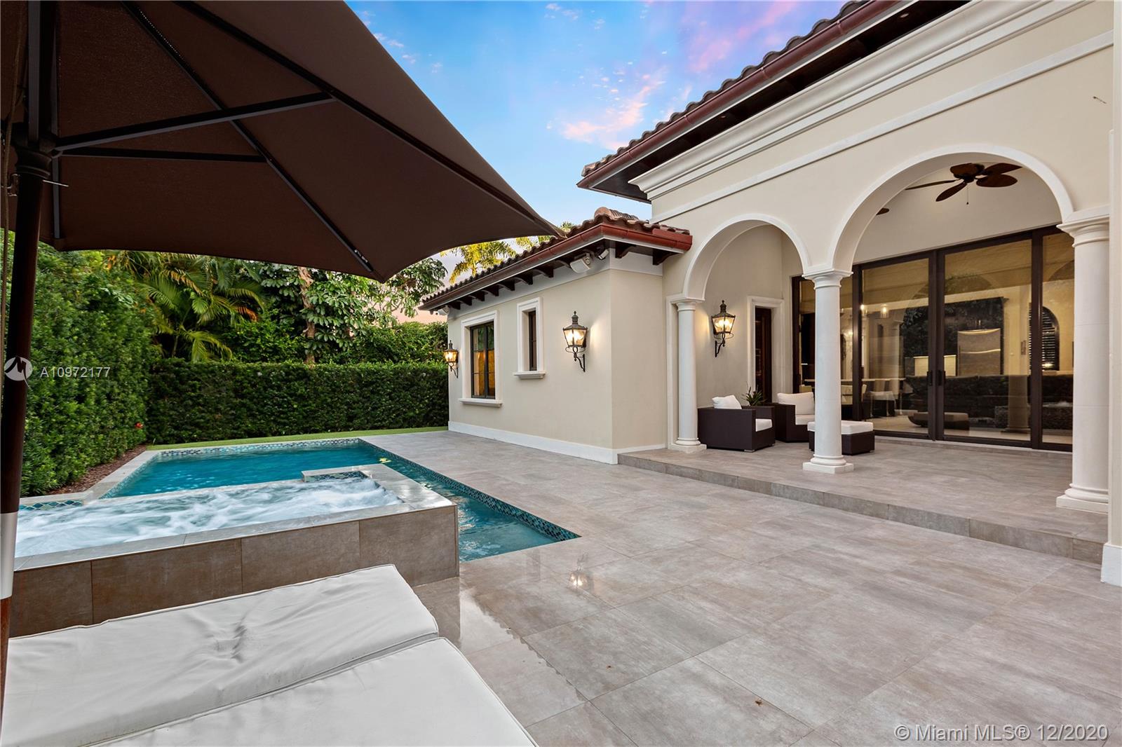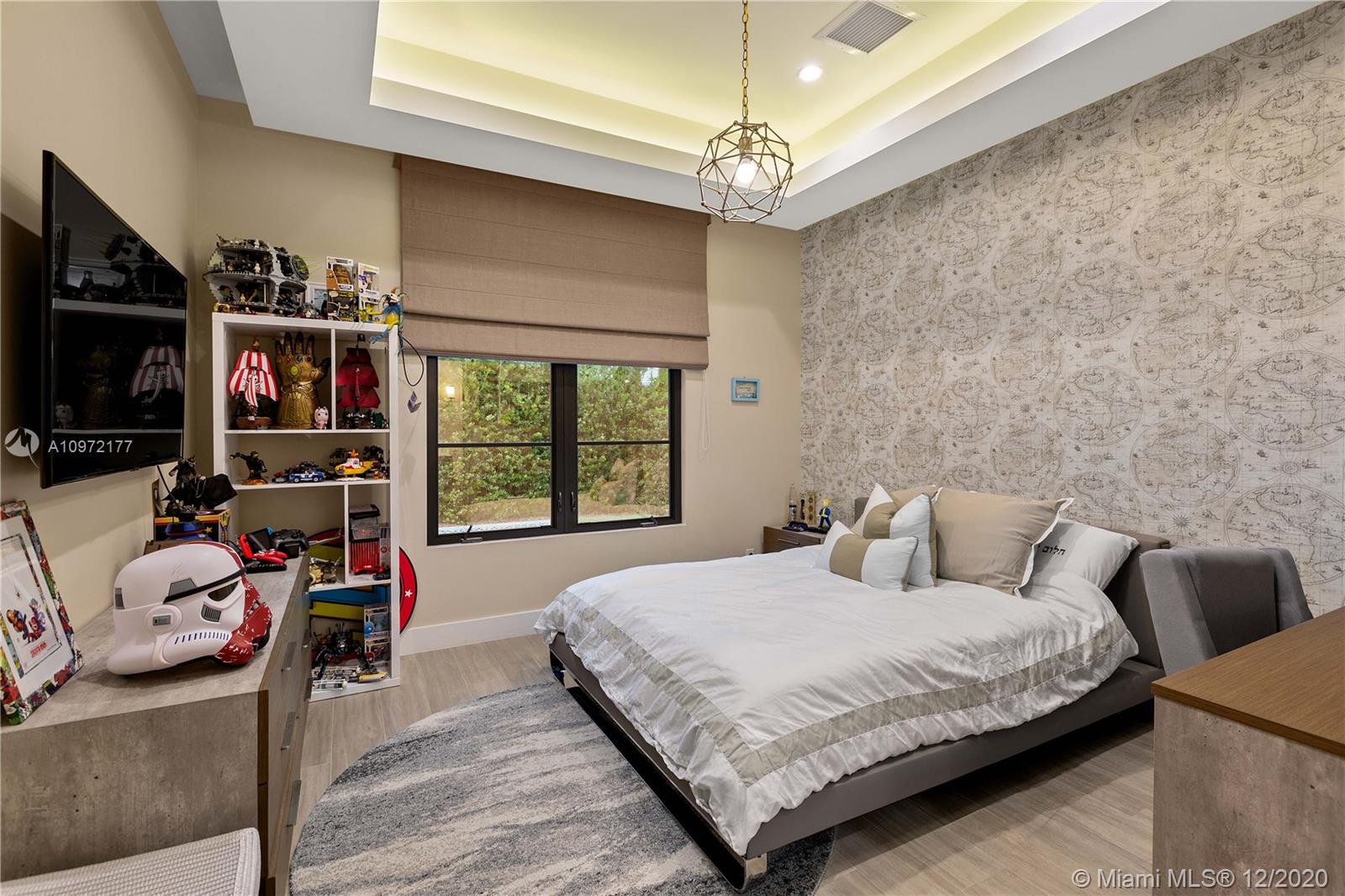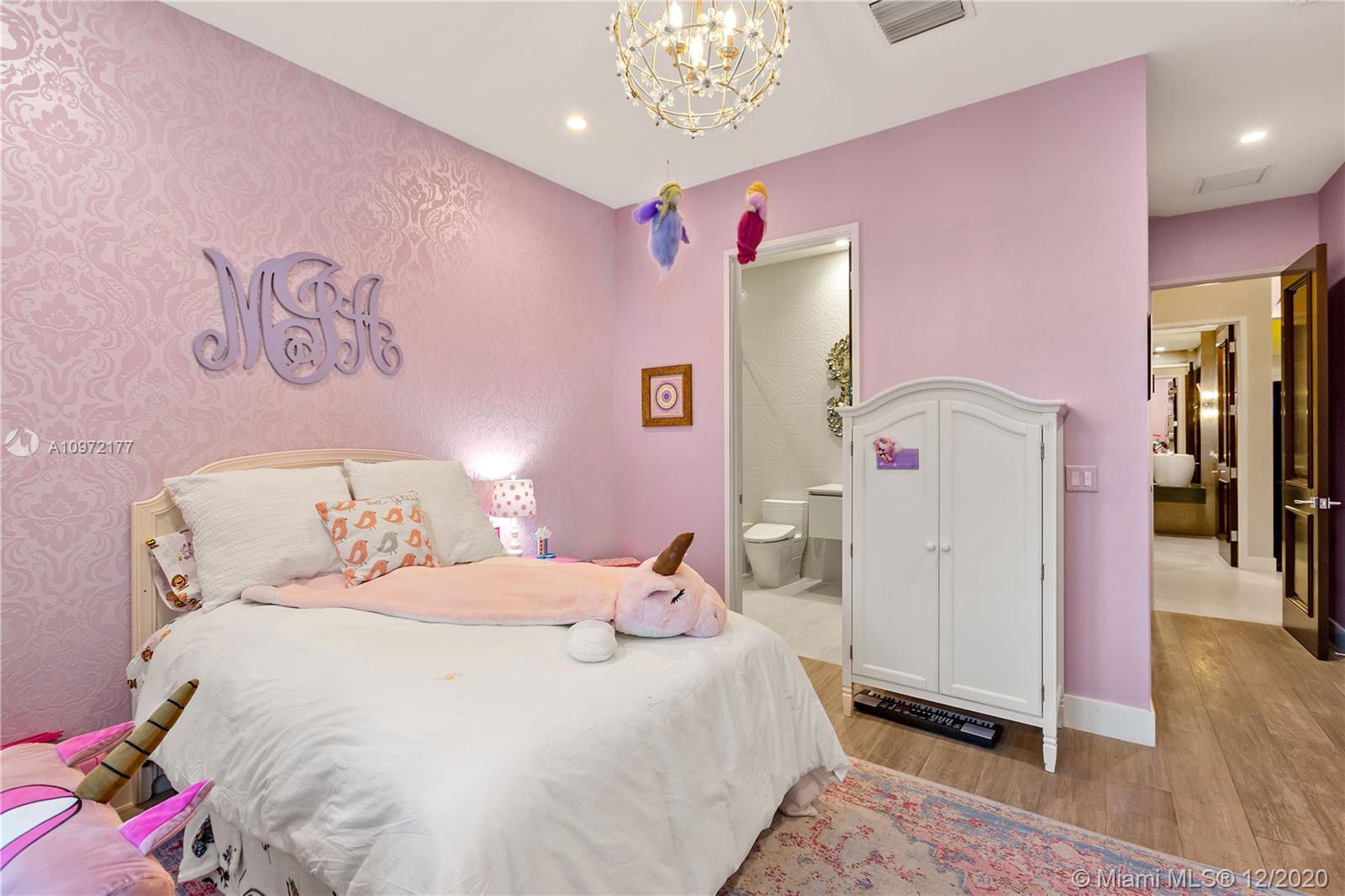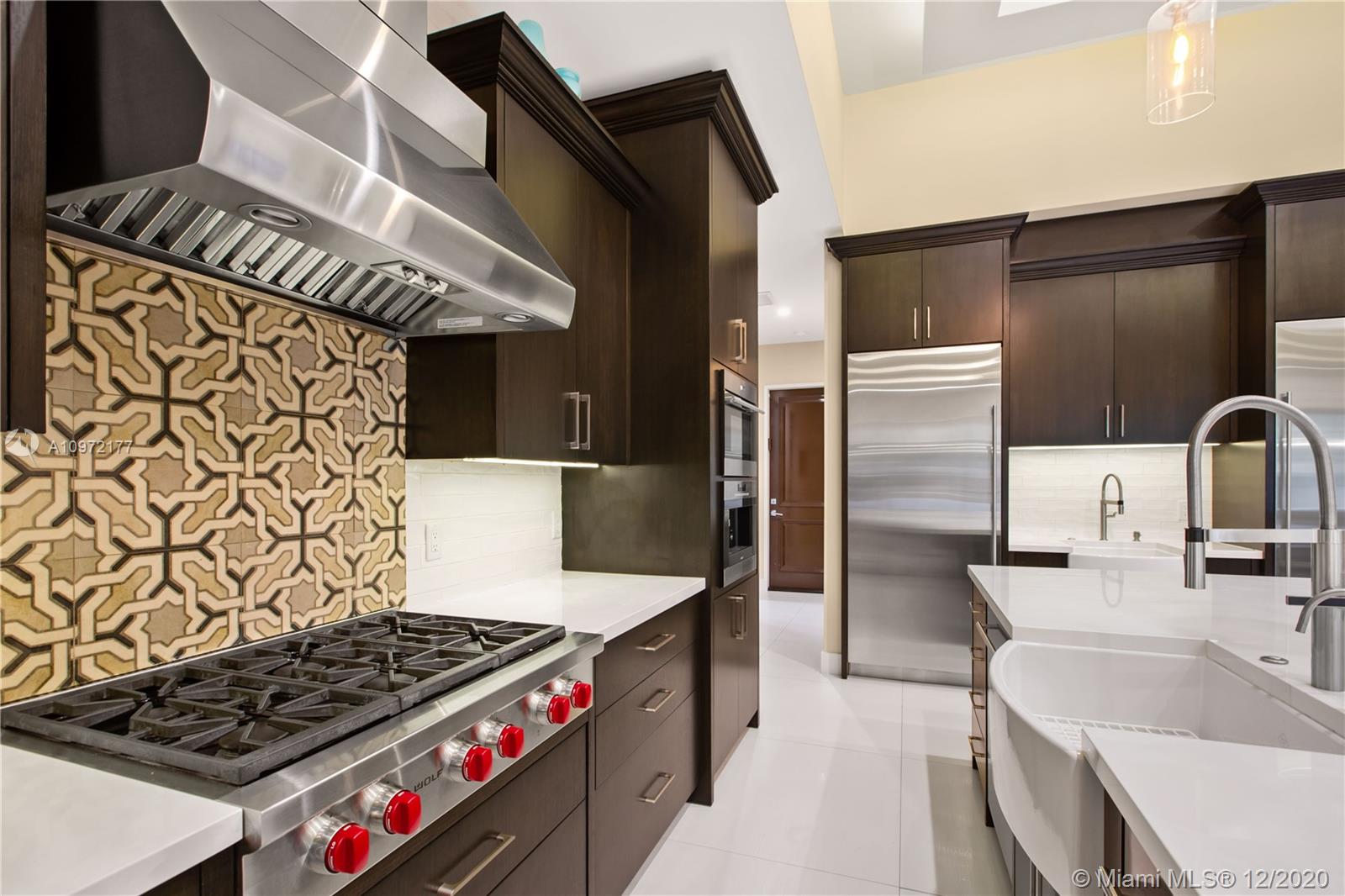 Fabulous custom built home in Bay Harbor... This smart home has everything; 5-bedrooms, 6-baths, each bedroom has en-suite bathroom, bright open floor plan with 14-foot coffered ceilings, gas stove, kosher kitchen, indoor laundry, & security cameras to start. The home has a circular driveway and a gated backyard with a covered patio, BBQ area, pool and hot-tub with smart controls. Impact windows, 2-car garage with epoxy floors. In an amazing neighborhood. This market is hot, don't let someone else beat you to it.