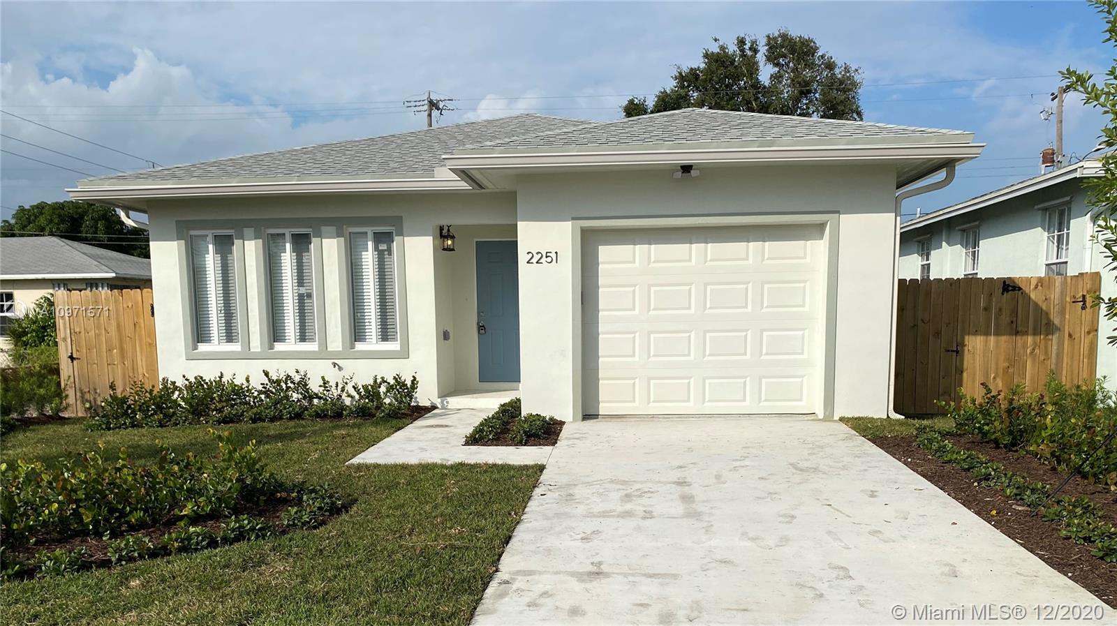 NEW CONSTRUCTION. Builder did a great job with this 3/2 home. Open space design. Impact proof windows and doors, water proof vinyl floor and tile on bathrooms, high efficiency central A/C brand Carrier, stainless still appliances brand Samsung, modern kitchen cabinets with quartz countertop. Attached garage and drive way. Sprinkler system with pump/well. Backyard fenced for privacy and pets. Service road for garbage collection. No Associations. Developer fee of 2%. Super centric location close from I-95 and Oakwood Shopping Center. You can’t lose this fabulous house!