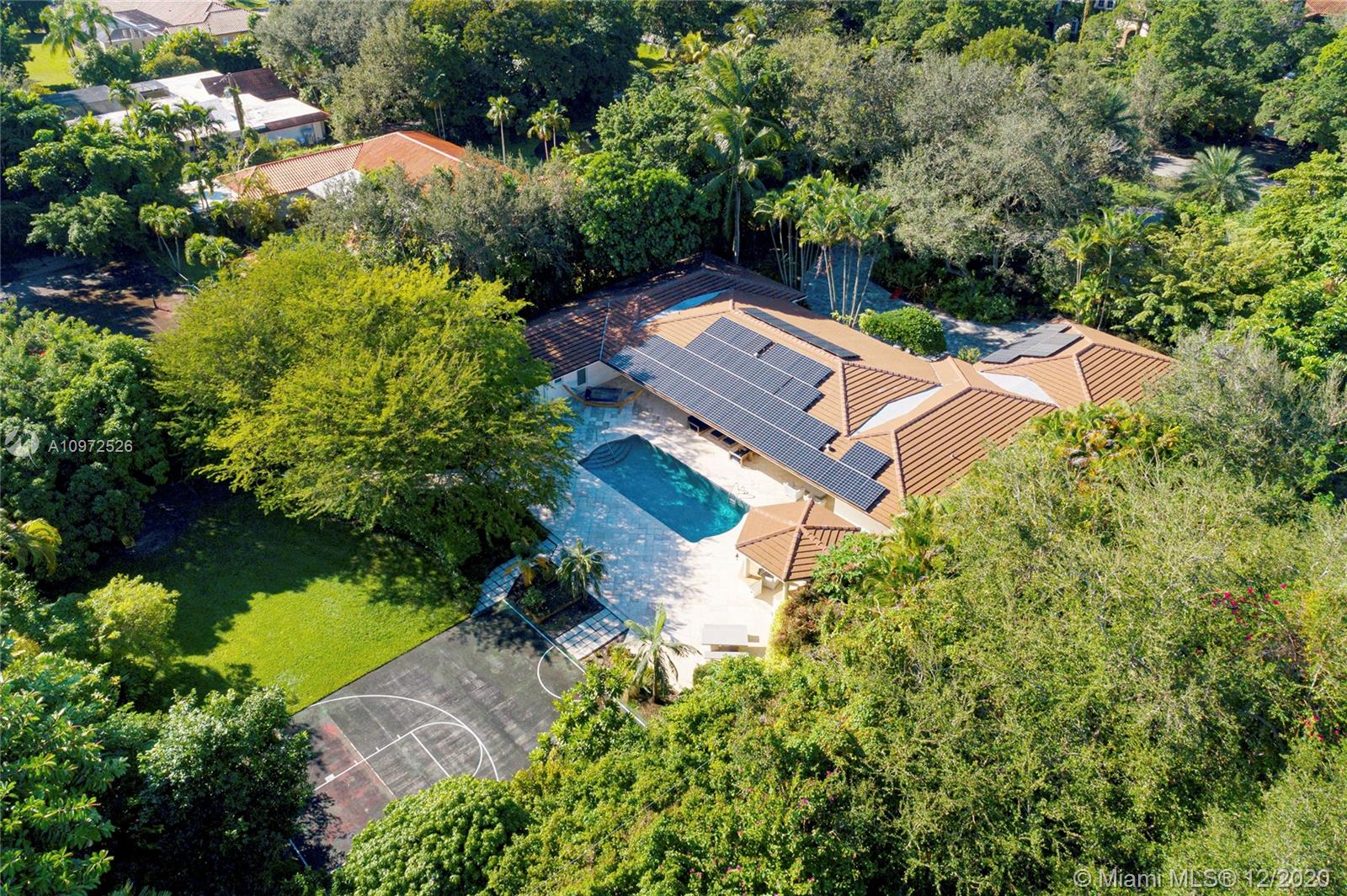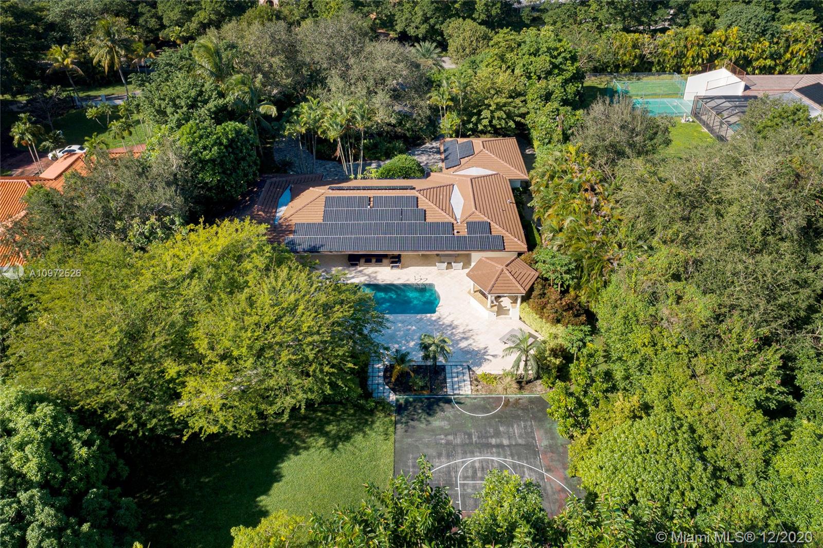 This is the house you have been waiting for with amazing spaces for everyone inside and out. Five large bedrooms plus an office and gym/game room. Huge family room. Gourmet eat-in chef’s kitchen with 48” 6-burner Wolf gas range, 74” Sub-Zero, wine chiller, double ovens and warming drawer. Large master suite and bath, with two walk-in closets. Marble and porcelain wood floors. Extremely private gated builder’s acre with expansive covered terrace and pool deck, summer kitchen gazebo with built-in grill, basketball court, open green space to run and play, and numerous exotic fruit trees. Laundry room. Oversized 2-car garage with lots of storage. Impressive entry with circular drive and pavers. New roof with solar panels. New A/C’s. All impact windows and doors. Top public and private schools.