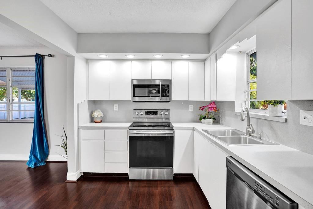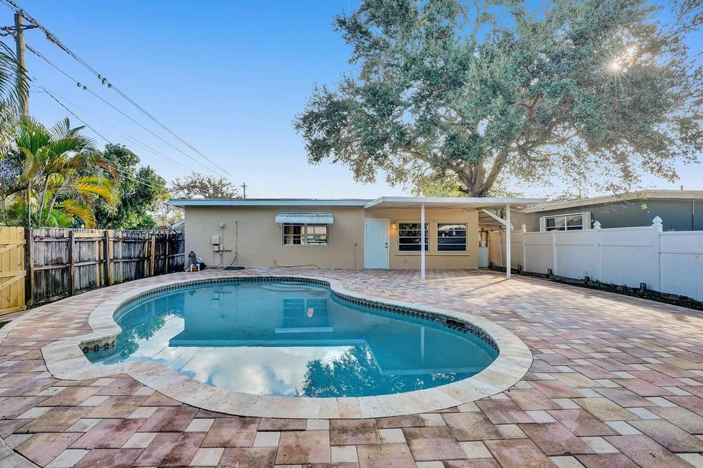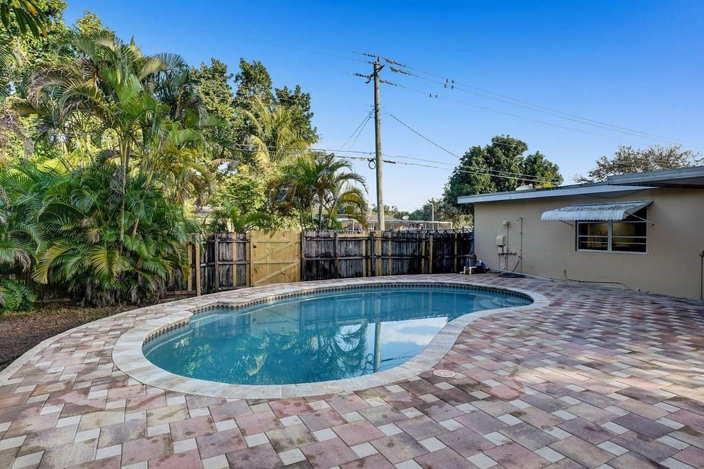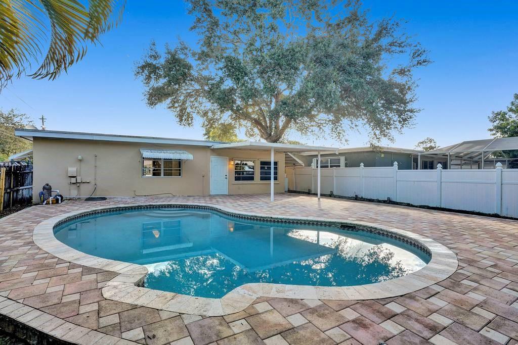 Hollywood Hills move-in ready 3 bedroom 2 bathroom home with a sparkling pool & huge fenced yard/patio on a corner lot. The main bathroom was fully remodeled with spa-like tile, rainfall shower head and granite top wood vanity with an under-mount sink. The kitchen has newer Samsung stainless appliances and has tons of cabinets & countertops for easy meal prep/storage. Huge family room with view of the pool/patio. Interior was freshly painted in tranquil colors. Luxury laminate floor recently installed in the main living areas. Enjoy access to excellent schools, Memorial Hospital, shopping and I-95 & the turnpike. Realtors please read the broker remarks in full. The main roof 1993, flat roof replaced 2014, AC replaced 2012 & water heater 2005. Priced to sell quickly in a great neighborhood!
