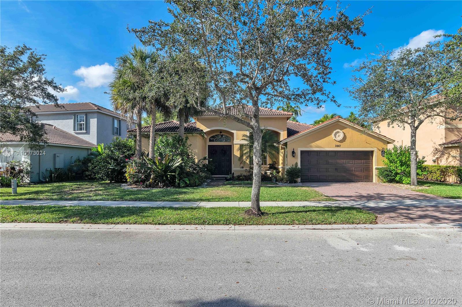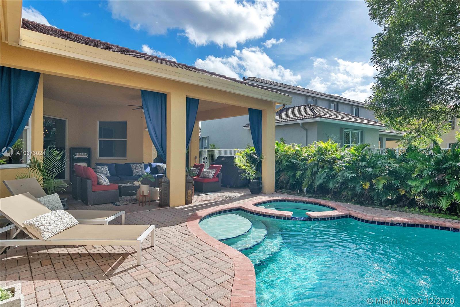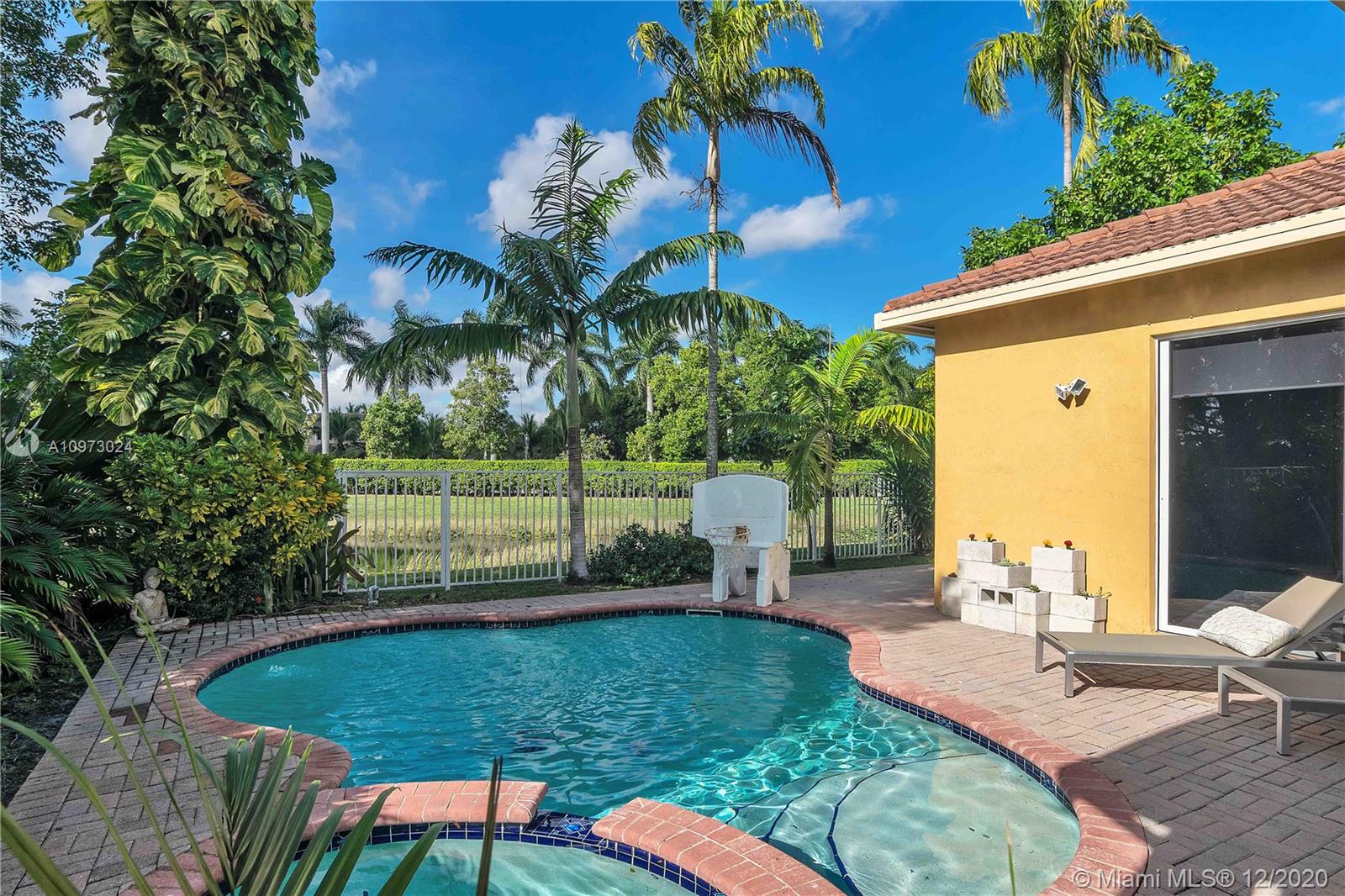Gorgeous 4 bed/3 bath, with pool and water view in sought after Isles at Weston, zoned for Falcon Cove and Cypress Bay High! This amazing 1 story home shows like a model: neutral colors, convenient 3 way split floor layout, very spacious dining room and large living room overlooking the pool, with luscious landscaping, and huge covered patio area, ideal for relaxing after a long day. High ceilings, bright and airy floor plan, kitchen overlooking the breakfast nook and a wonderful family room, great for entertaining. Large Master Bedroom with direct access to the pool area, Junior suite with its own full bathroom, also used as cabana bath, perfect for guests, office or in-laws. 2 more bedrooms share the 3rd bath. Fantastic amenities including club house, gym, tot lot and more! Call today!