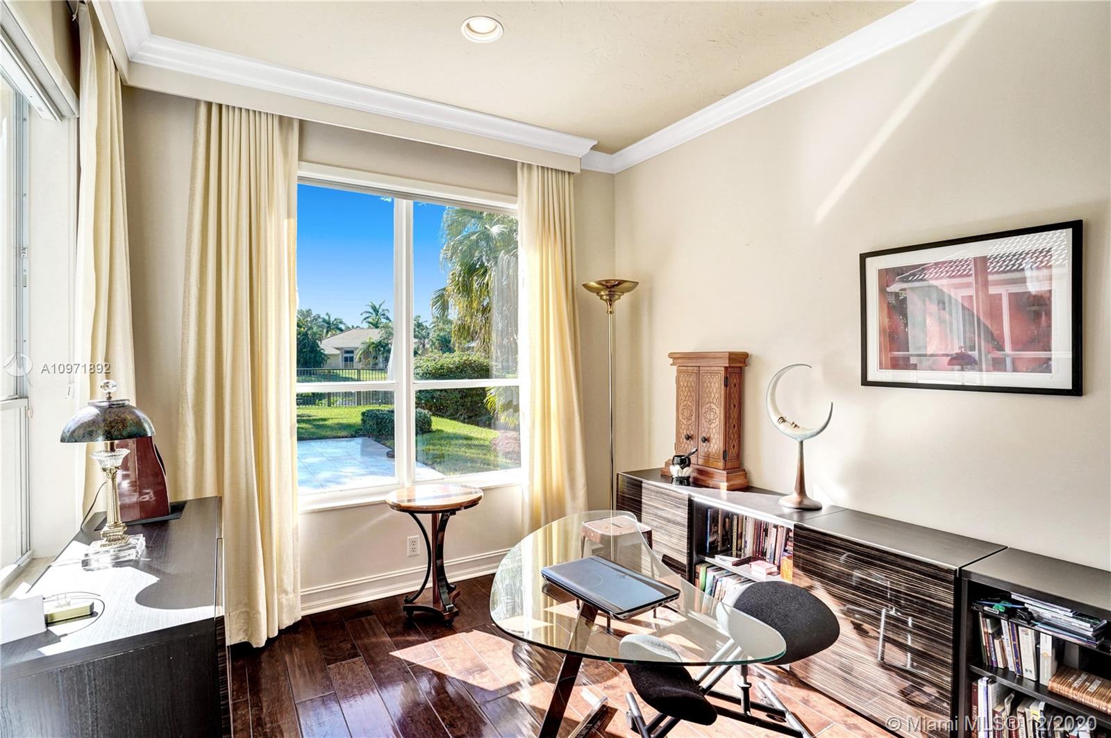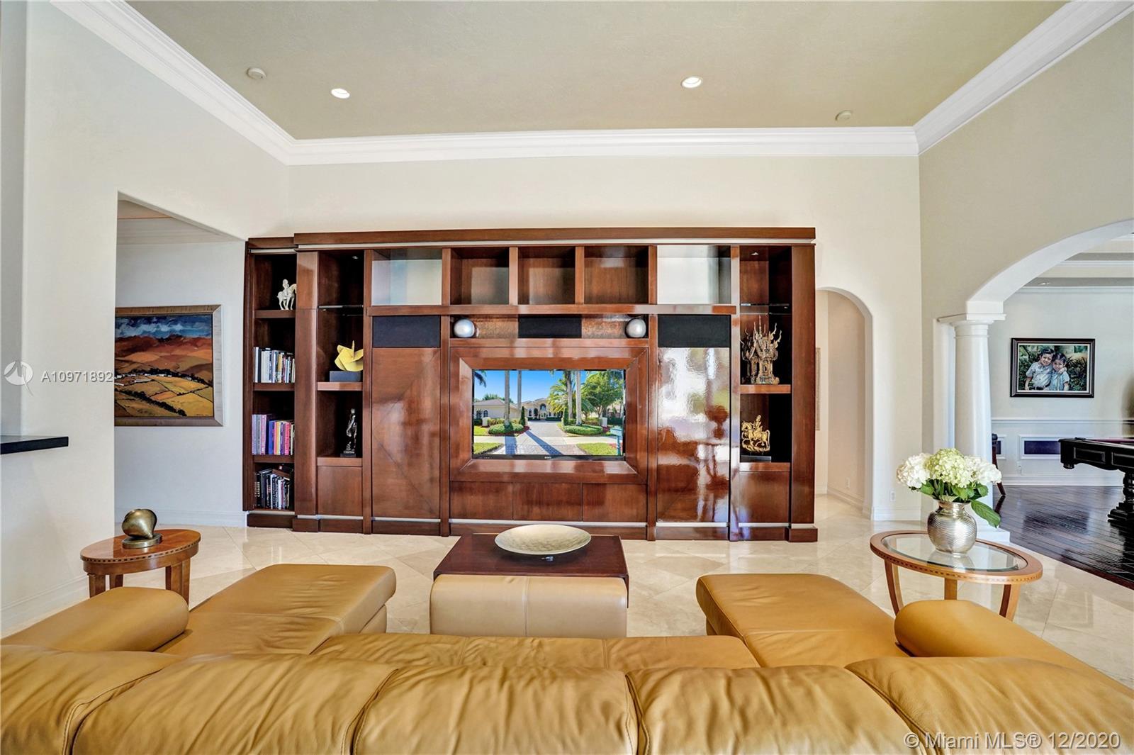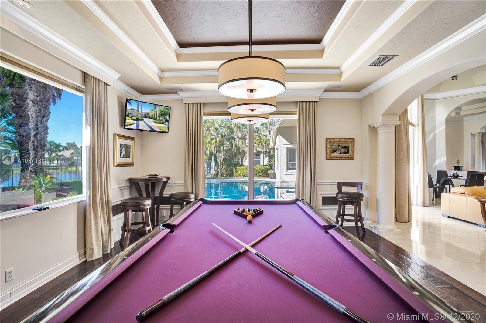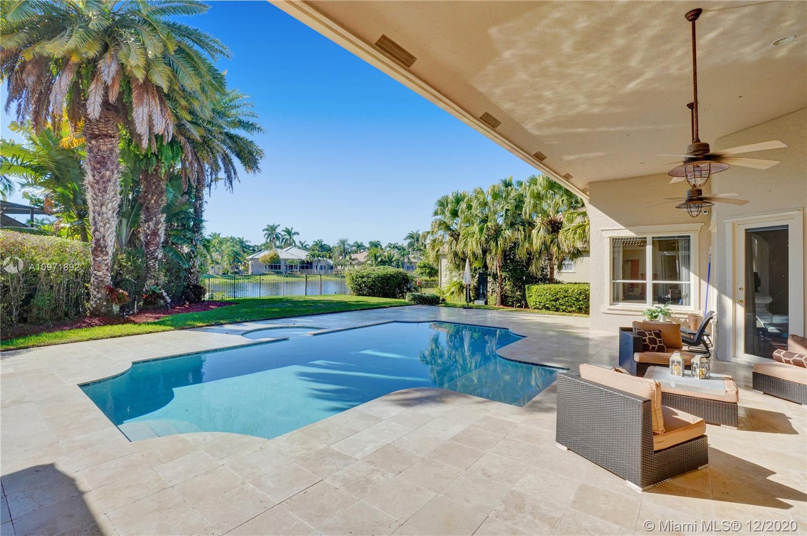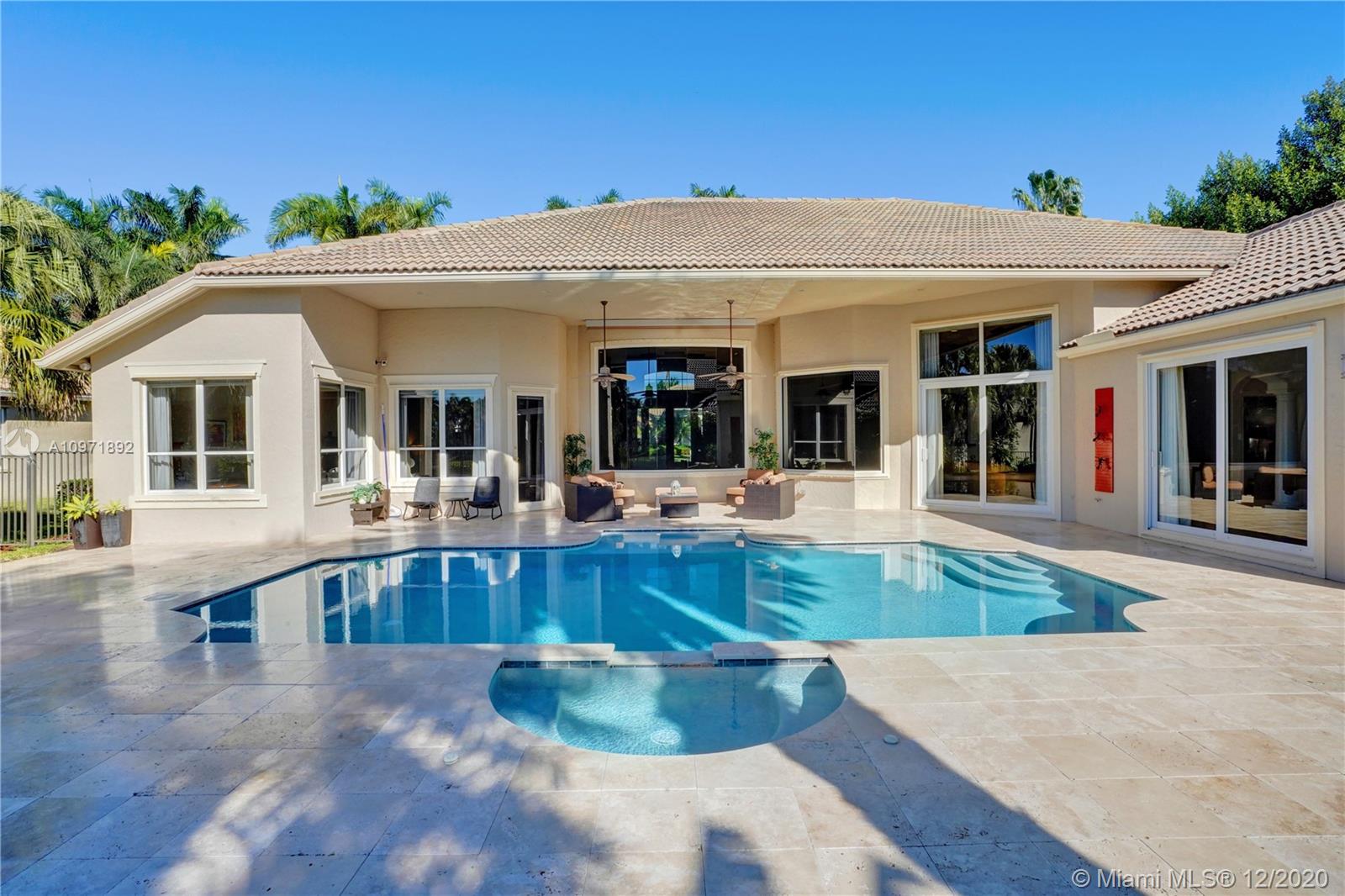 First time on the market! Stunning and turnkey transitional modern custom built home in the Provence neighborhood of Weston Hills Country Club! Private cul-de-sac location, premium 0.41 acre lake front lot, 5,495 sq ft full of details and versatility from floor to ceiling. 5 bedrooms, 4 1/2 bathrooms plus den/office with storage closet and a playroom/billiard room. Numerous features include: Saturnia marble and wood floors, Silhouette window blinds throughout, motorized blackouts in each room, updated kitchen design with large walk-in pantry, additional den/office next to master bedroom, luxurious built-in family room wall unit with plenty of storage, brand new patio and pool, 3 car garage with house wall system, extra parking on driveway and 2 attics. Meticulously maintained!!!