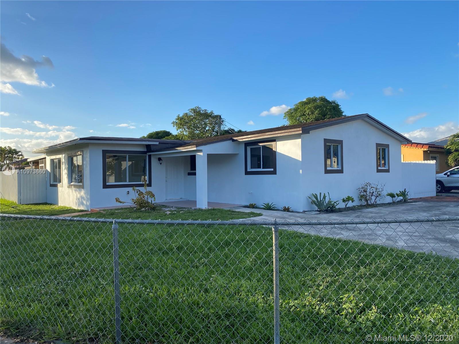 Gorgeous fully remodeled home in a very desirable Hialeah neighborhood. The property has brand new porcelain tile floors and a stunning acrylic and granite kitchen. All kitchen appliances will be installed before pre-closing as well. This home is a corner lot which leaves plenty of space in the back/side or front for side boats or RV. Spacious backyard with shed and covered terrace. Must see property, will not last on the market!