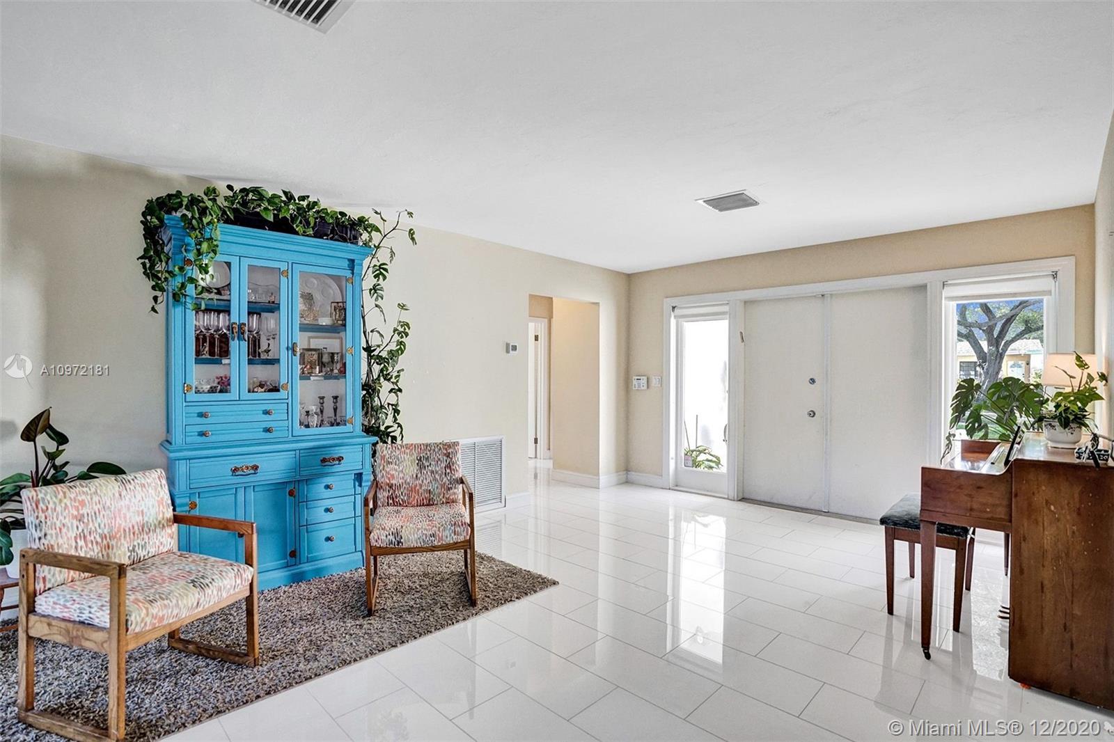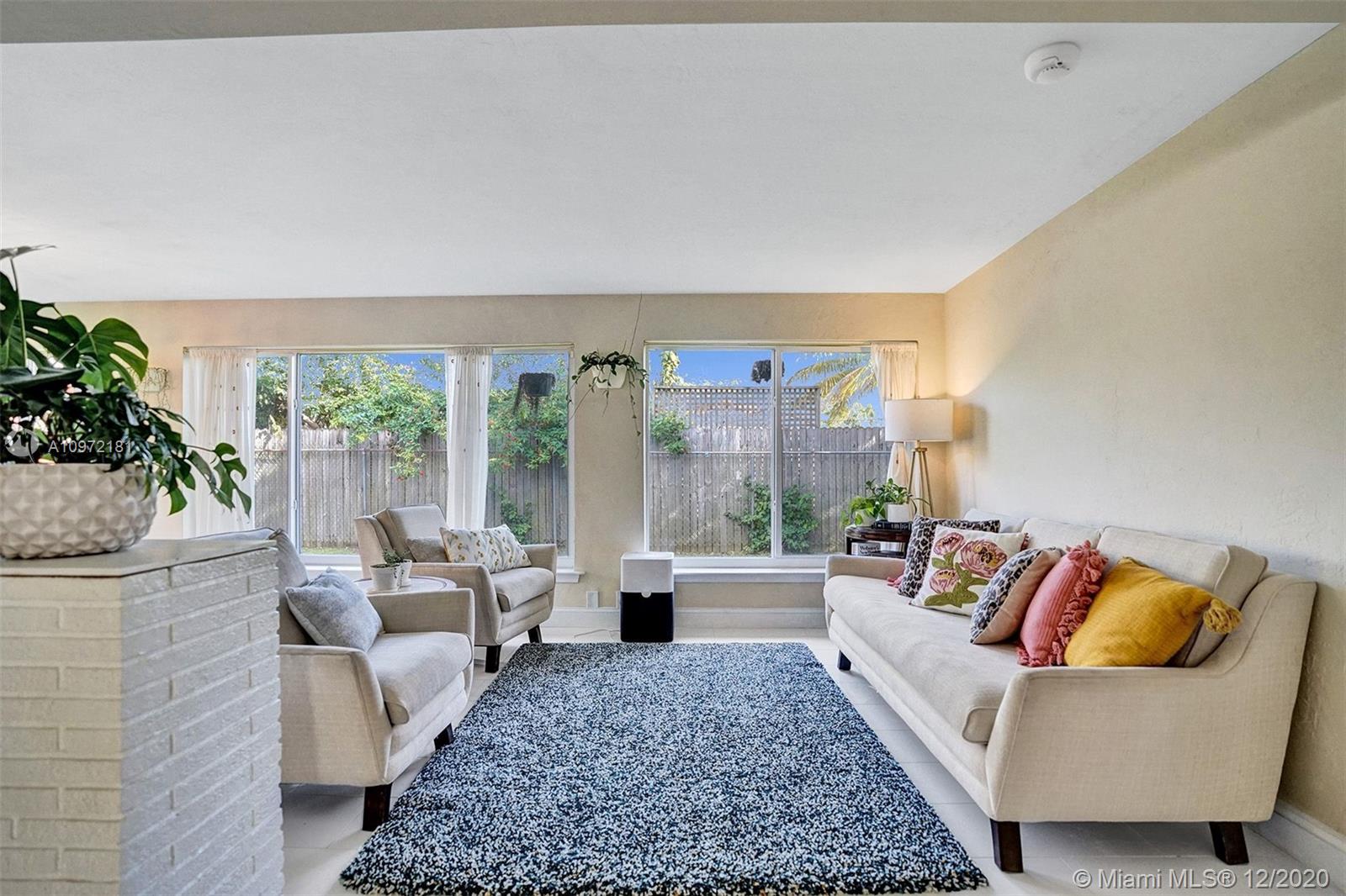 Beautifully Updated Home in Desirable and Rarely Available Lawn Acres in Hollywood. One story with lots of natural, bright lighting from Massive Impact Windows with views to the private back gardens. Entertain outdoors in your private fenced-in Back Patio and Backyard. Relax under the awning and enjoy a plentiful Mango tree that fruits twice a year. Large front patio garden is perfect for neighborhood get togethers along the tree lined streets. Tastefully Updated Kitchen with Kitchenaid Stainless Appliances and White Quartz Countertops. Updated White Tile Flooring runs Throughout the Open Living Spaces. Laundry Room/Mud Room/Pantry adjacent to 2 car garage and kitchen. NEWER ROOF/transferable warranty (3 yrs old), AC (3 months old), Plumbing/Pipes, Electrical Panel. Carpeted Bedrooms.