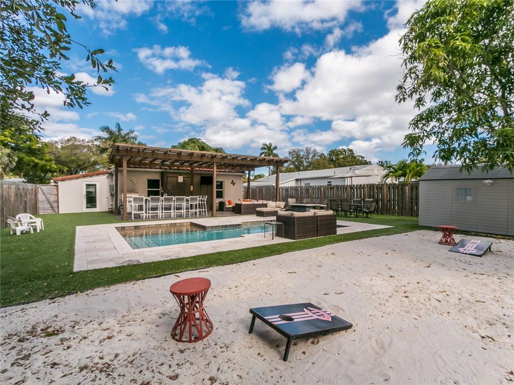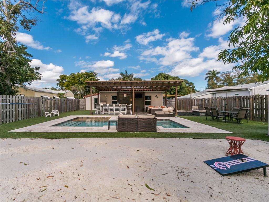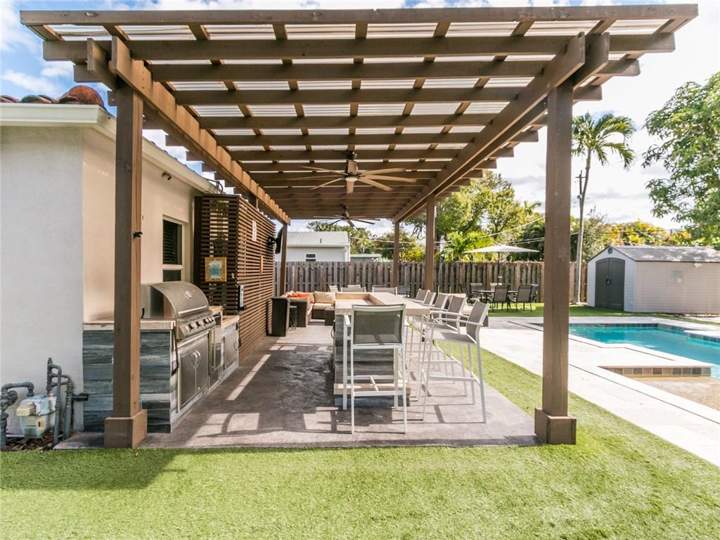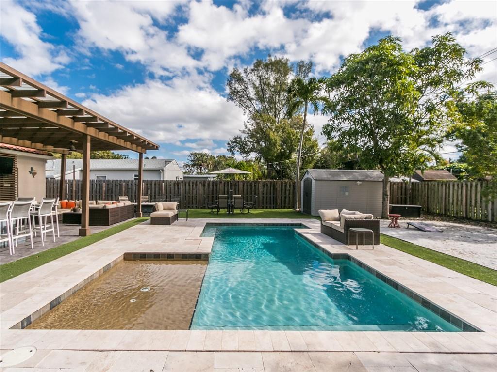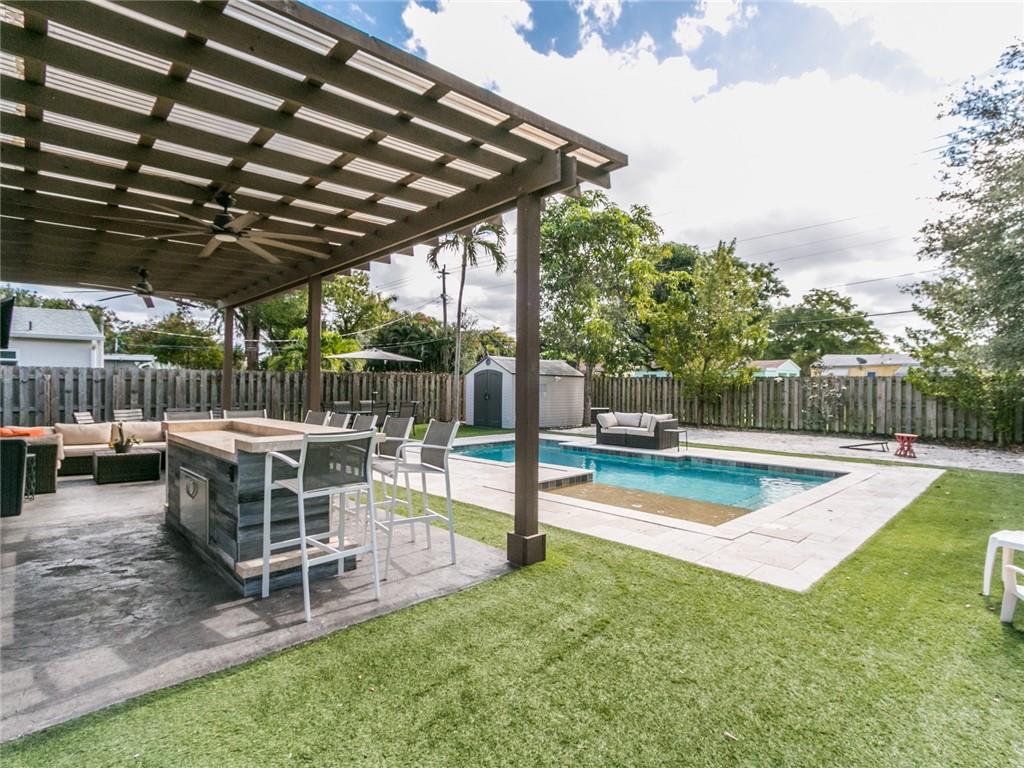 Impressive 3/2 single family home in desirable Croissant Park featuring the outdoor space of your quarantine dreams – truly a tropical oasis! Heated salt water pool w/ sunshelf & travertine decking, summer kitchen under expansive pergola with built in gas bbq, ice maker, dining island & gas fire pit for chilly winter evenings. SOLAR PANELS to reduce carbon footprint & utility bills. ADD’L FEATURES & FINISHES: Impact windows/doors, updated kitchen, baths, fully fenced yard, gas tankless H2O heater, 2 yr new AC w/ sanitizing UV light system, whole home water filtration system, pavered circular driveway, low maintenance landscaping with astro turf, storage shed. PRIME LOCATION in east Fort Lauderdale - minutes from airport, sea port, highways, beach, downtown/Las Olas, & new Whole Foods!