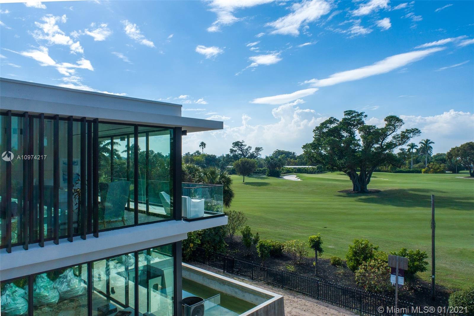 Be the first to live in this newly built tropical modern Ralph Choeff designed residence offering expansive western views of the La Gorce Country Club Golf Course. Situated on the 15th fairway, this home offers a private sliding gate w/direct access to golf course & club house. Completed in 2020, this customizable 4,000SF smart home, set up by Visual Acoustics, offers 4bd/4ba + convertible den/office. No expense spared, designer high-end finishes throughout! Enjoy idyllic sunsets from your expansive flow-through 2nd floor Master Terrace. Master suite boasts gorgeous Calacatta Gold bath w/ custom dressing room. Accordion style floor to ceiling glass panel system brings the outdoors in & extend your living space onto your infinity edge pool deck. A golfer’s dream, this home is one of a kind!