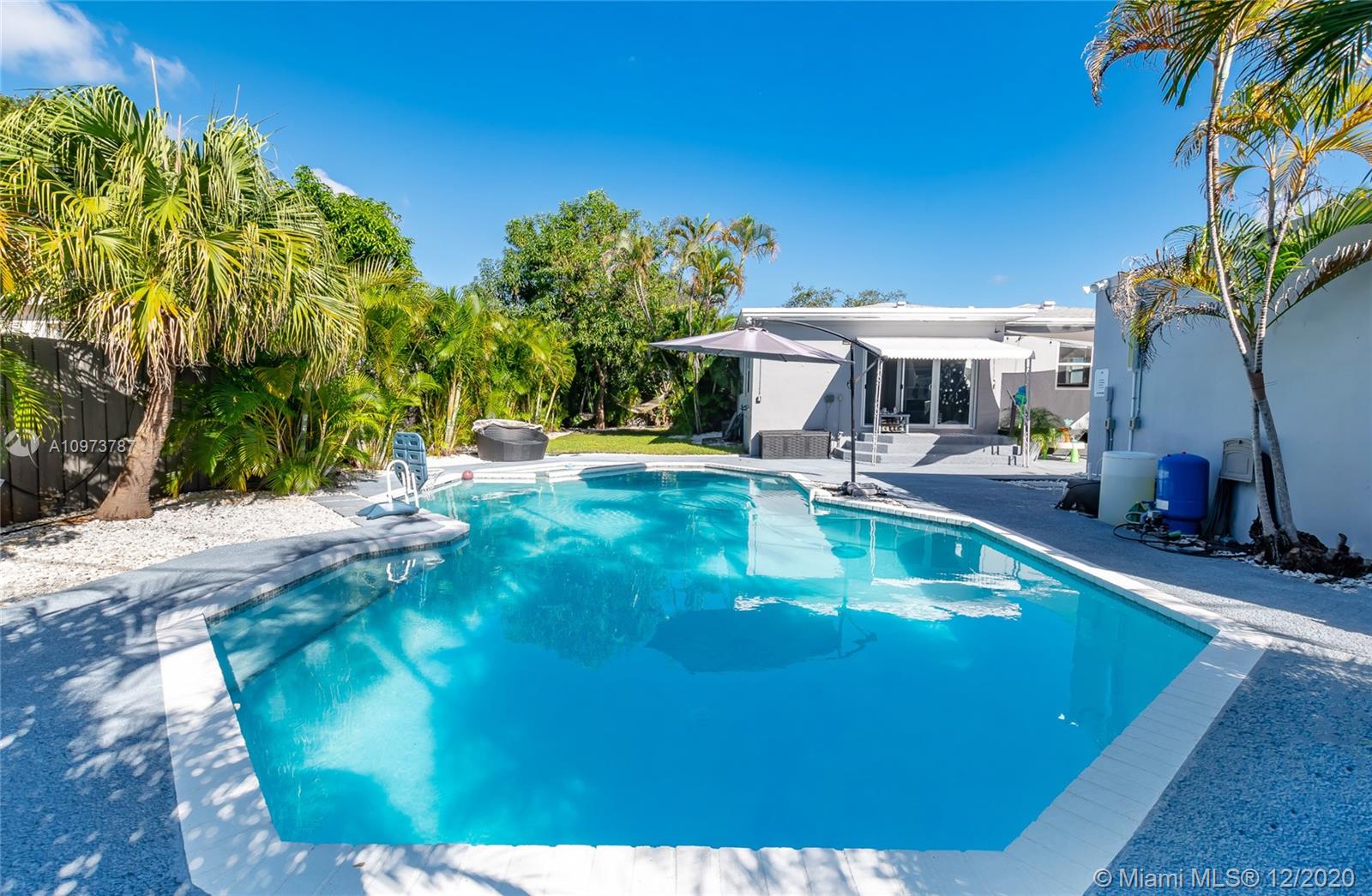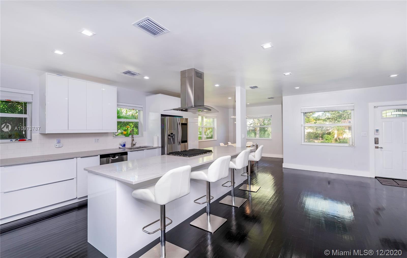 Enjoy the amazing natural light as you enter this Remodeled 4 Bed/3 bath Smart Home with internet-enabled thermostat, refrigerator, security & camera system. Huge Great Room & Kitchen perfect for entertaining. Set up as a 3/2 Main house & Legal detached 1/1 649 sq ft guest house with living/dining & separate bedroom. Updates include: electrical system with all LED fixtures, impact windows/doors, flooring, all fixtures, Euro-style kitchen with quartz counters & stainless steel appliances inc gas range & fresh int/ext paint. Resort-style pool with spa & solar heating and over 2,000 sq feet of patio to entertain. Fully landscaped with established palms & Mango tree. Fully fenced with automatic gate opener to pull vehicles, boats or RV into the driveway running the full length of the property.