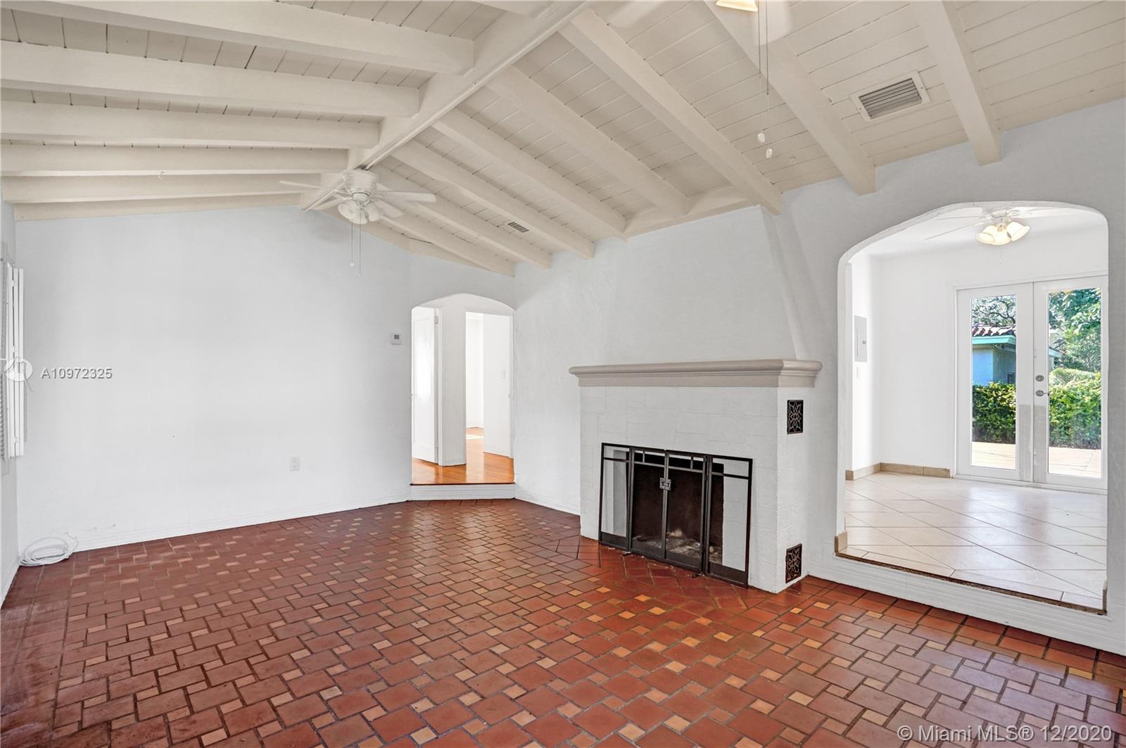 Tranquil and spacious 3bed/2 bath home in the heart of Coral Gables. This is a great home, whether you are looking for a cozy starter home or seeking a renovation project with serious potential. Step into the vast, 10,000 SqFt fenced in lot through a charming front porch. Formal living area with a fireplace, cathedral ceilings, and a set of french doors leading to the expansive backyard, which is perfect for entertaining. Dining area, large family room, and a separate laundry room with ample space for a gym or art studio. This home is located on a quiet enclosed street, conveniently located by the Granada Golf Course, University of Miami, the Miami International Airport, and fine dining and shopping options. 818 Pizarro is waiting for you! Easy to show!